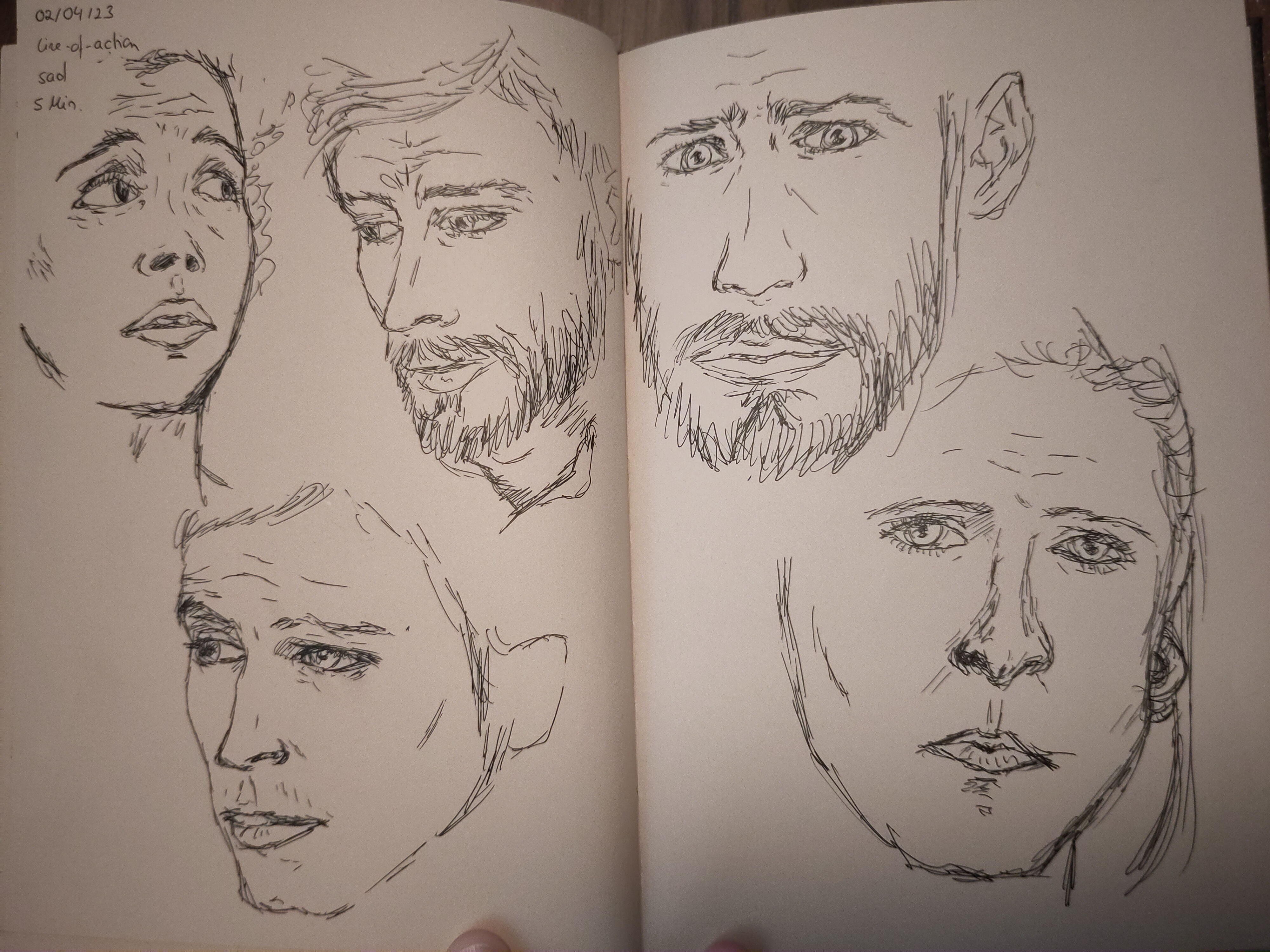 Wieder mit Referenzen von Line of Action mit 5 Minuten pro Zeichnung, weil ich das bei Gesichtern recht gut machbar fand.