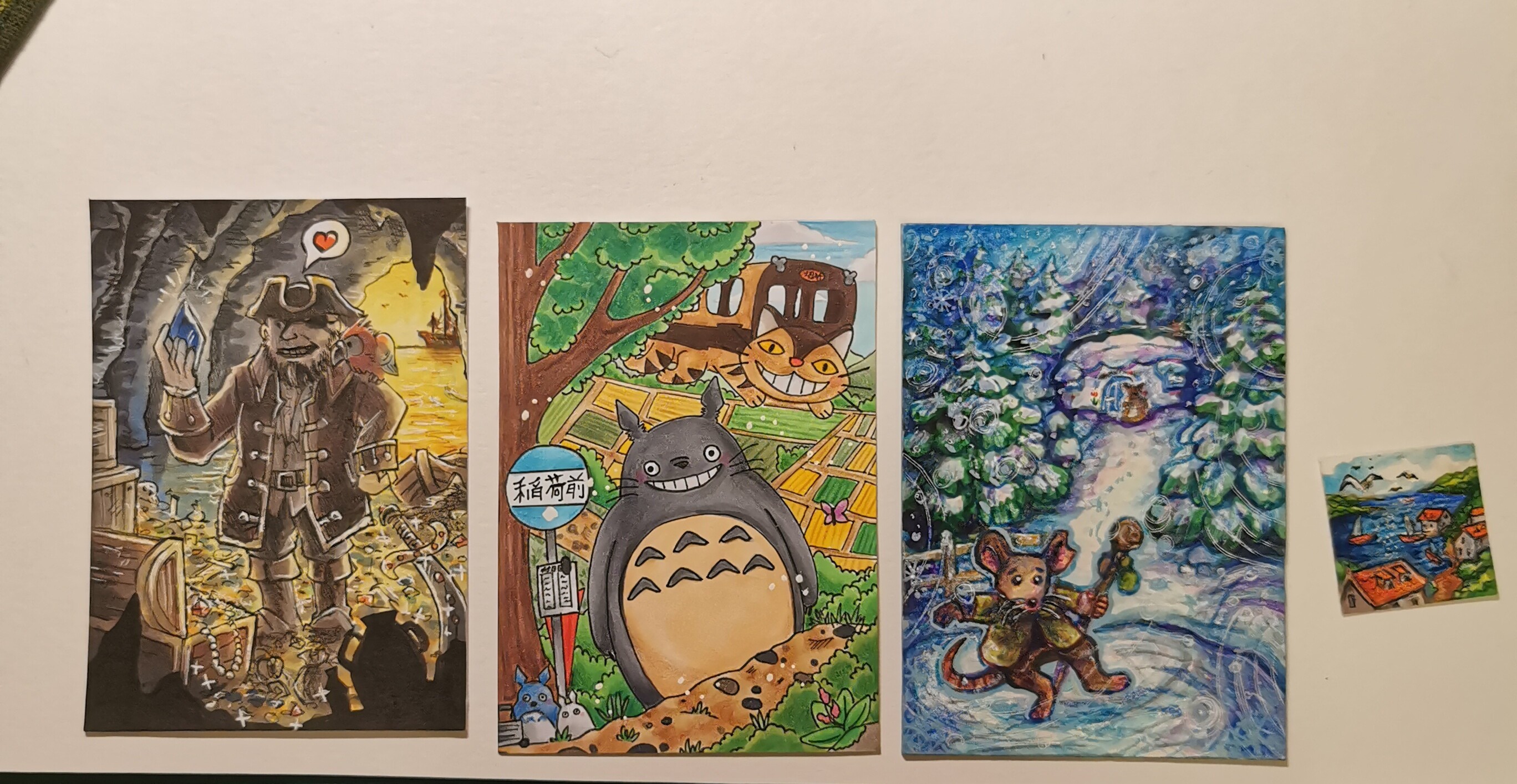 Und es gab einen totoro von @oO-bittersweet-Oo , inklusive katzenbus. Der katzenbus ist ja auch so genial im film gewesen und ich feiere es, wie er es mit auf die karte geschafft hat. Totoro schaut auch so niedlich, wie er an der Bushaltestelle wartet. Ich liebe seinen Gesichtsausdruck. Und felder nach hinten sind so traumhaft schön. Eine so tolle Szene hier, die bittersweet gewählt hat.