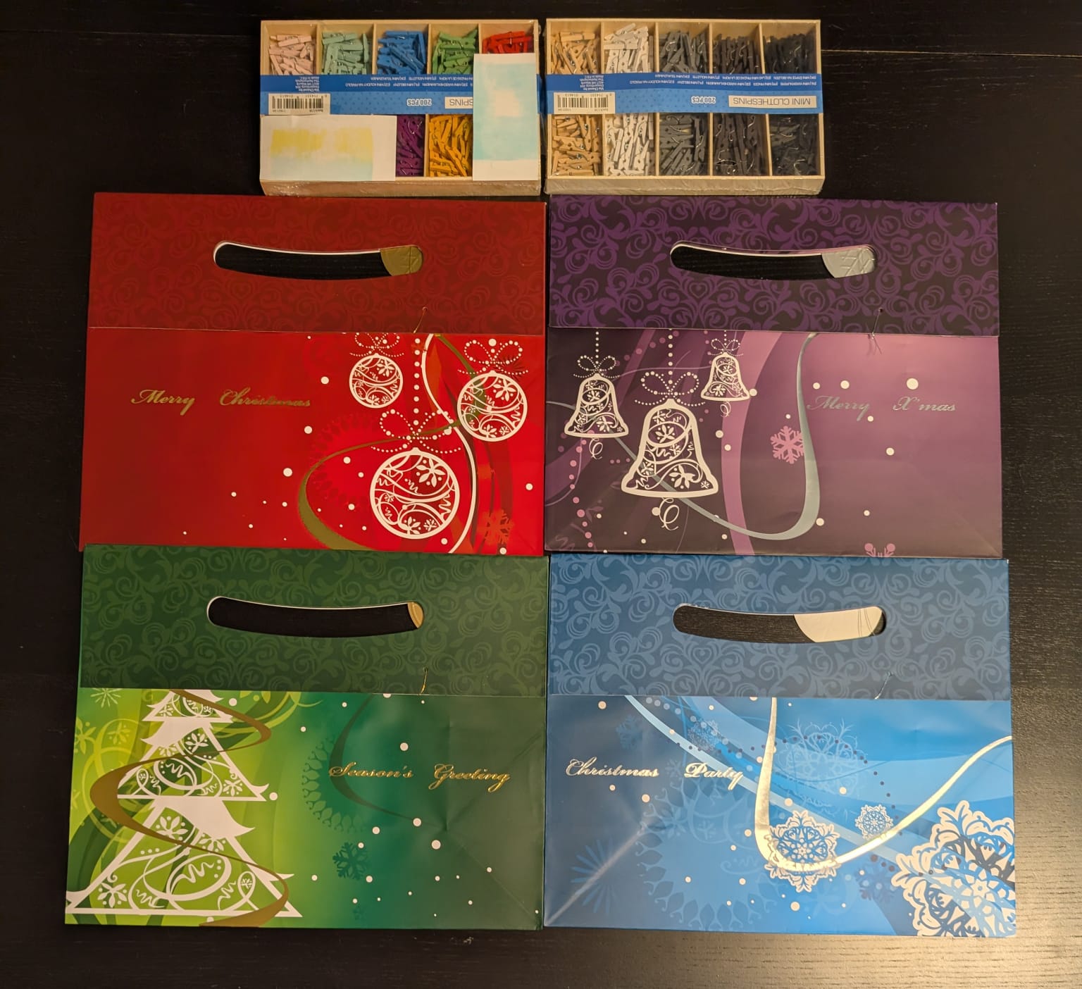 Wer noch Interesse an einer großen Geschenktüte hat für den Kalender (sind neu - falls Bedarf, falte ich gerne eine mal zusammen um die Größe zu sehen), würde ich die für 1€ mit dazu geben und ihr sucht euch die Farbe aus (hab sie selbst auf dem letzten Weihnachtsmarkt gekauft und nie benutzt).