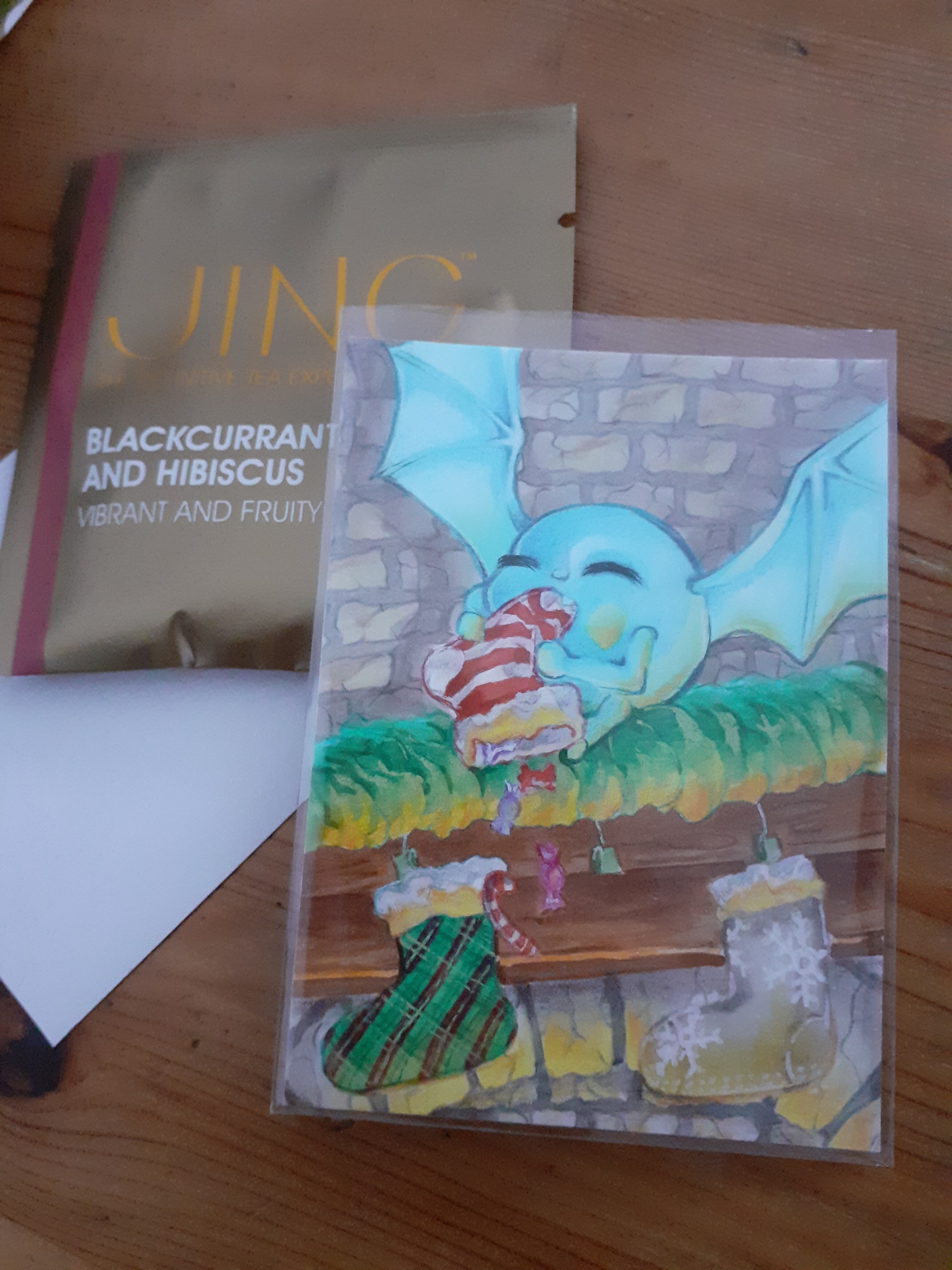Ich habe auch schon mein Tüchen geöffnet und hatte diese tolle Karte und noch einen schicken Früchtetee <3