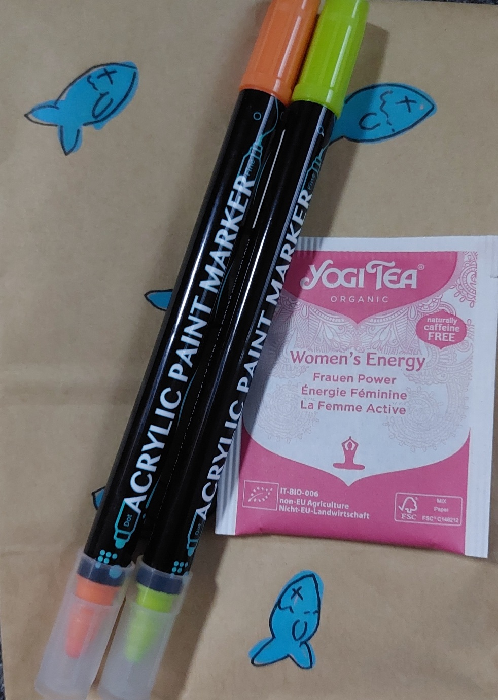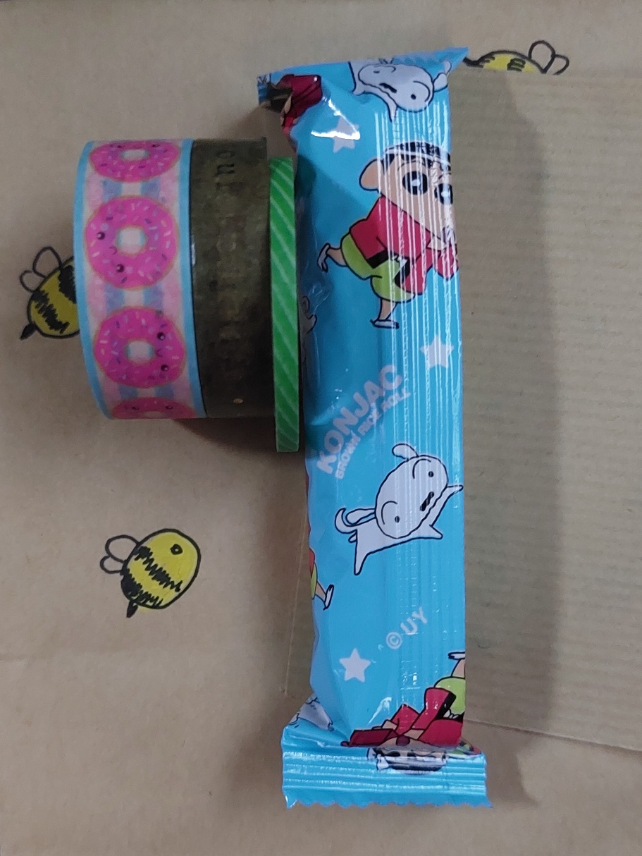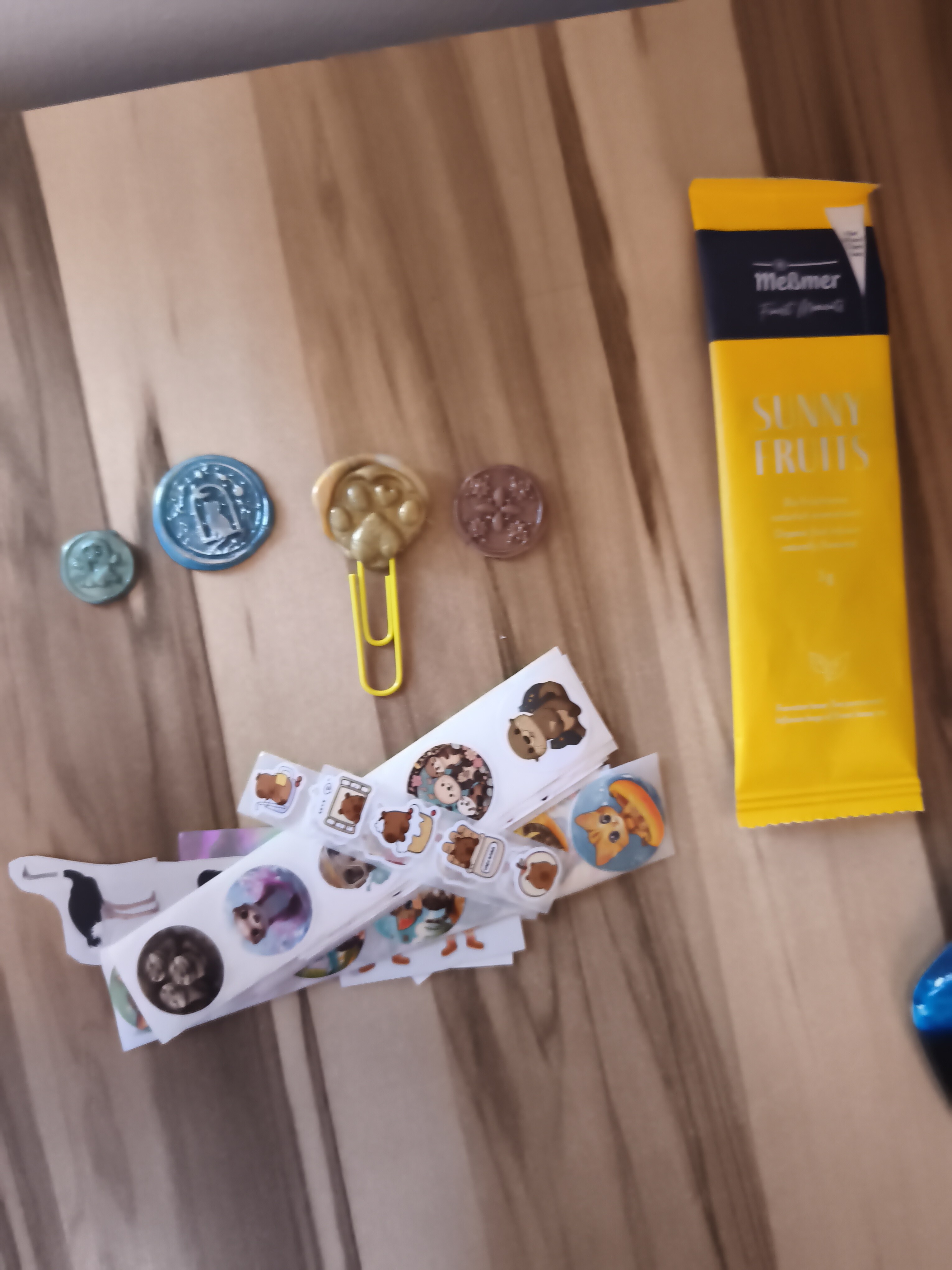 Fand ich sehr lustig. Und drinnen waren Sticker, washiproben, Tee und Koro Cups. Da ich aktuell bei meiner Schwester bin hat sie mir direkt ein paar Sticker geklaut