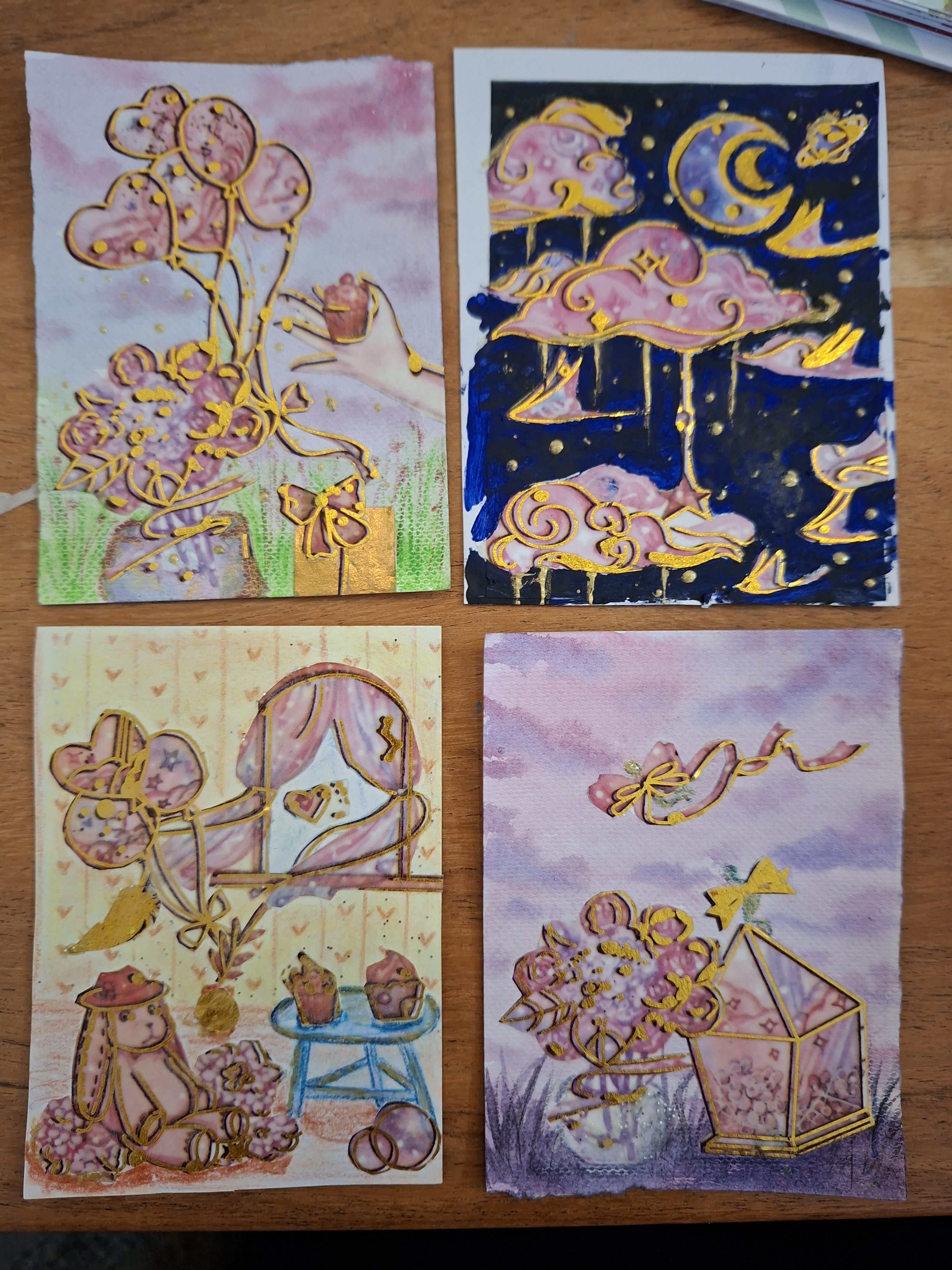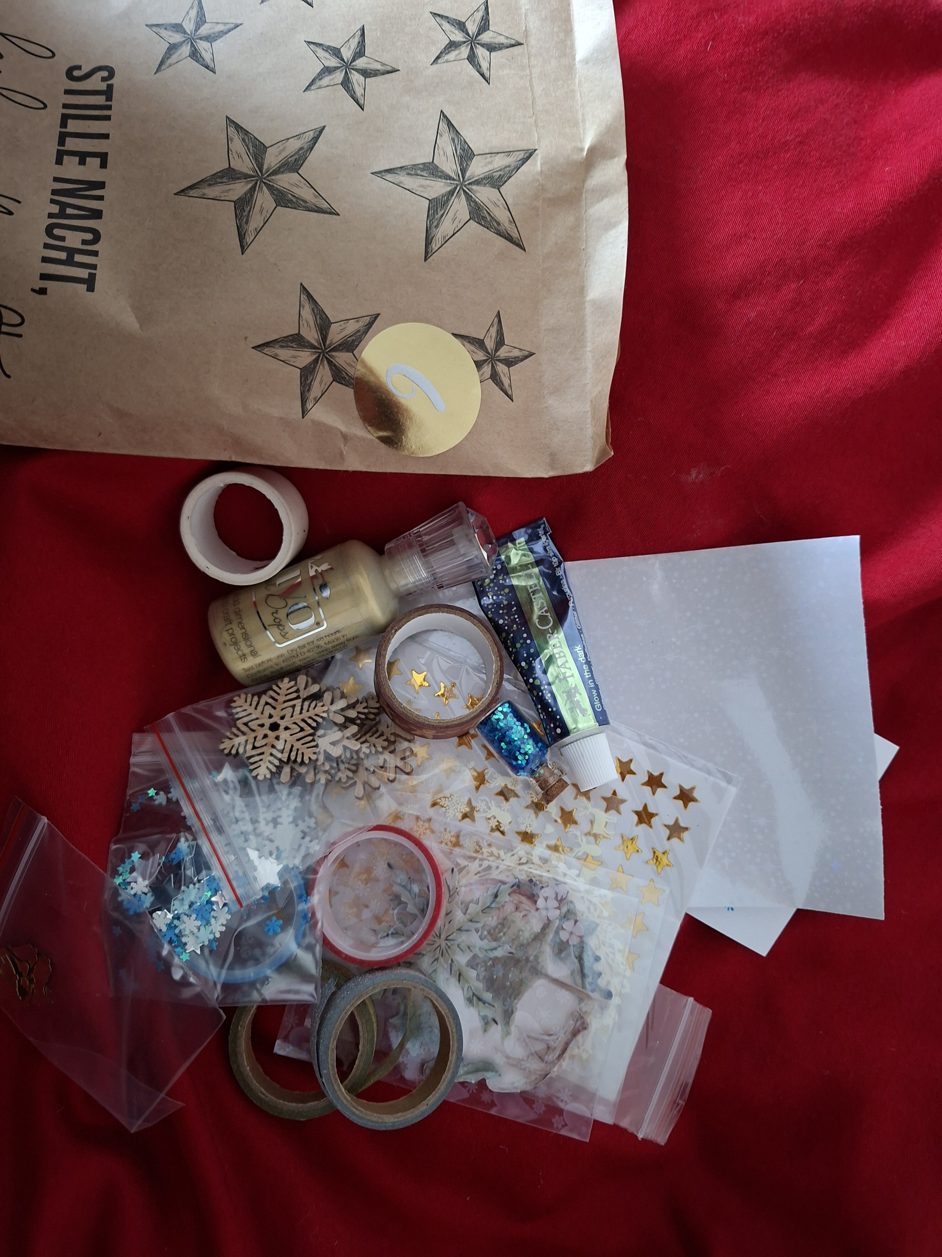 Gestern habe ich Aquarellpapiere in KaKAO Format und einen Glitzerkleber bekommen.
