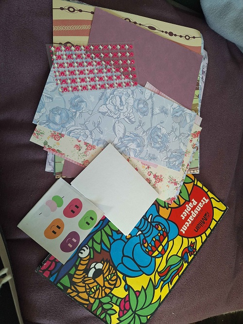 Heute gab es diesen Block mit Motivpapier. Auch ganz hübsch, wobei ich versuche meine Sammlung eher zu reduzieren