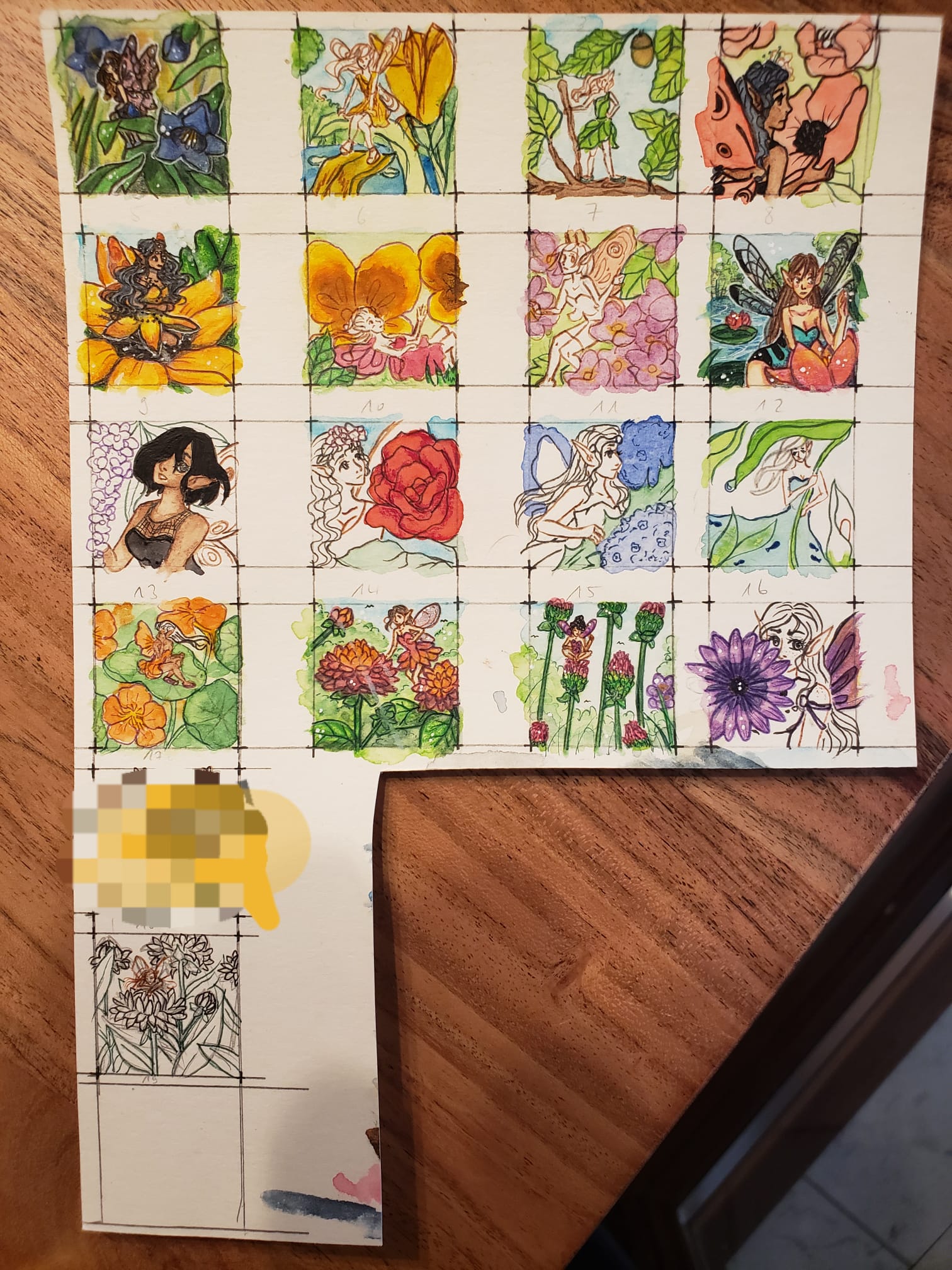 Zu den zwei die fehlen: eines braucht noch bessere Schattierung und ein weiteres bin ich gerade am neu zeichnen, da mir das Endergebnis nicht gefallen hat. Die zwei werde ich als extra Foto noch hinzufügen, wenn sie soweit sind, aber ansonsten bin ich fertig :)