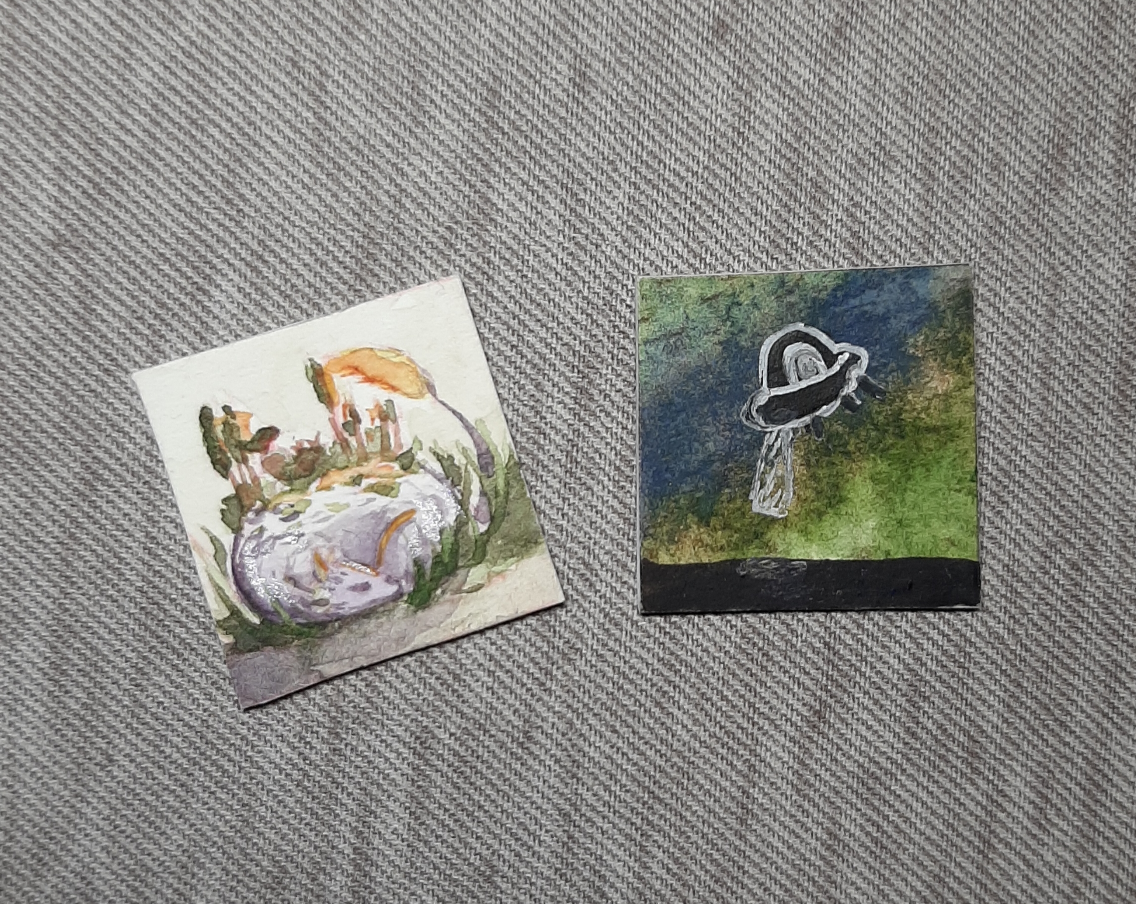 Mal wieder zwei Inchies gemeinsam - ein unglaublich niedlicher schlafender Drache von gestern und heute ein kleines UFO vor einem Hkmmel mit hübscher Textur :D