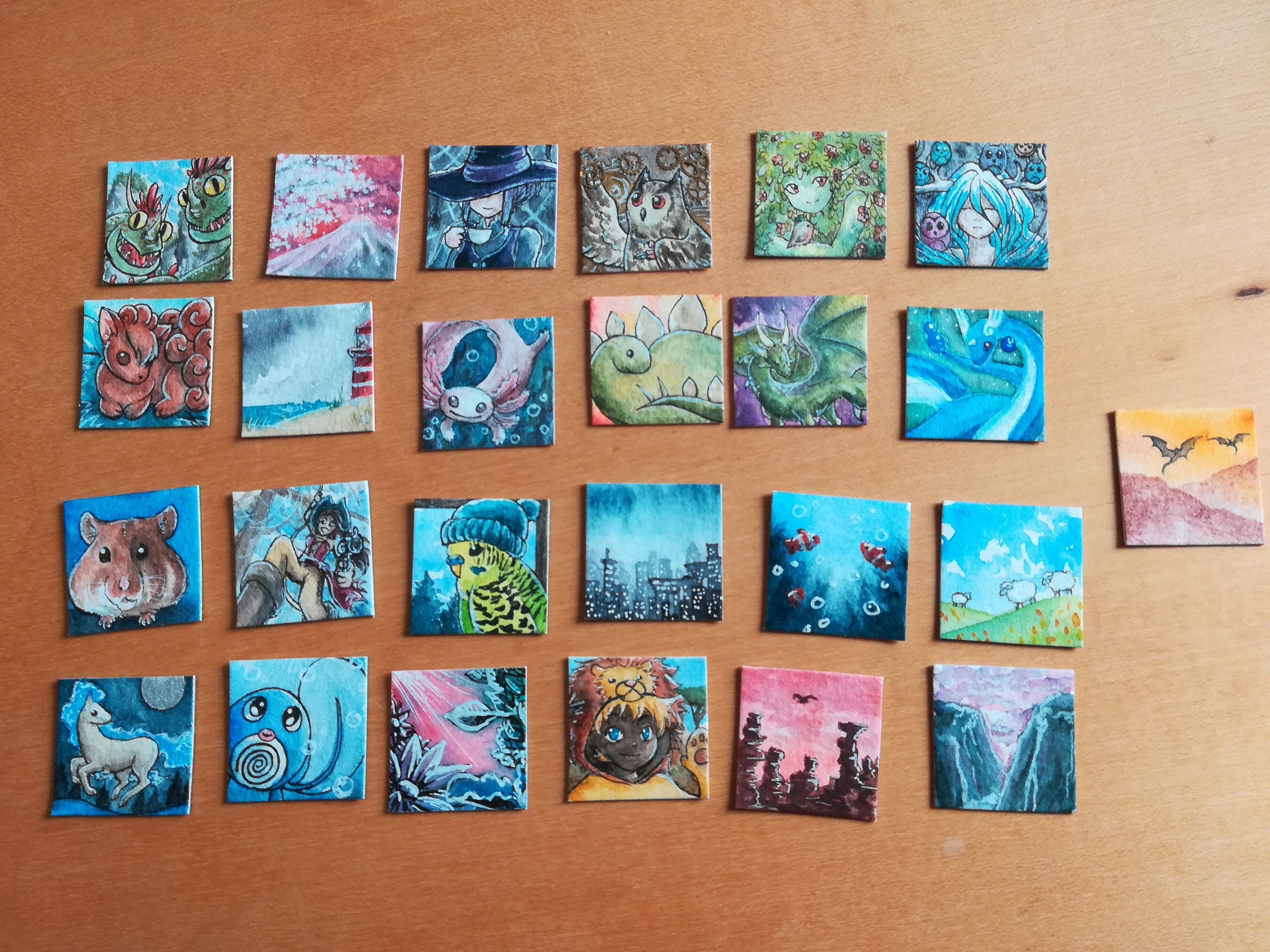 Wie wahrscheinlich schon dem einen oder anderen aufgefallen, hab ich dieses Jahr keine inchies personalisiert und daher nur Landschaften gemalt, damit alle irgendwie „ähnlich“ sind und jetzt keine super exotischen Themen dabei sind, mit denen niemand was anfangen kann.