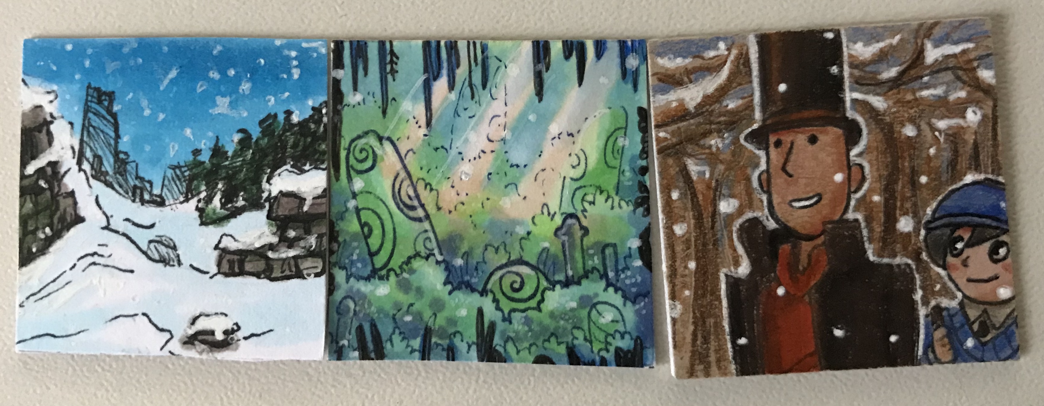 Nummer 18: Professor Layton und sein Lehrling Luke im Schnee. Wirklich schöne Idee, ich frag mich über welches Rätsel die beiden wohl wieder nachdenken… Dankeschön <3