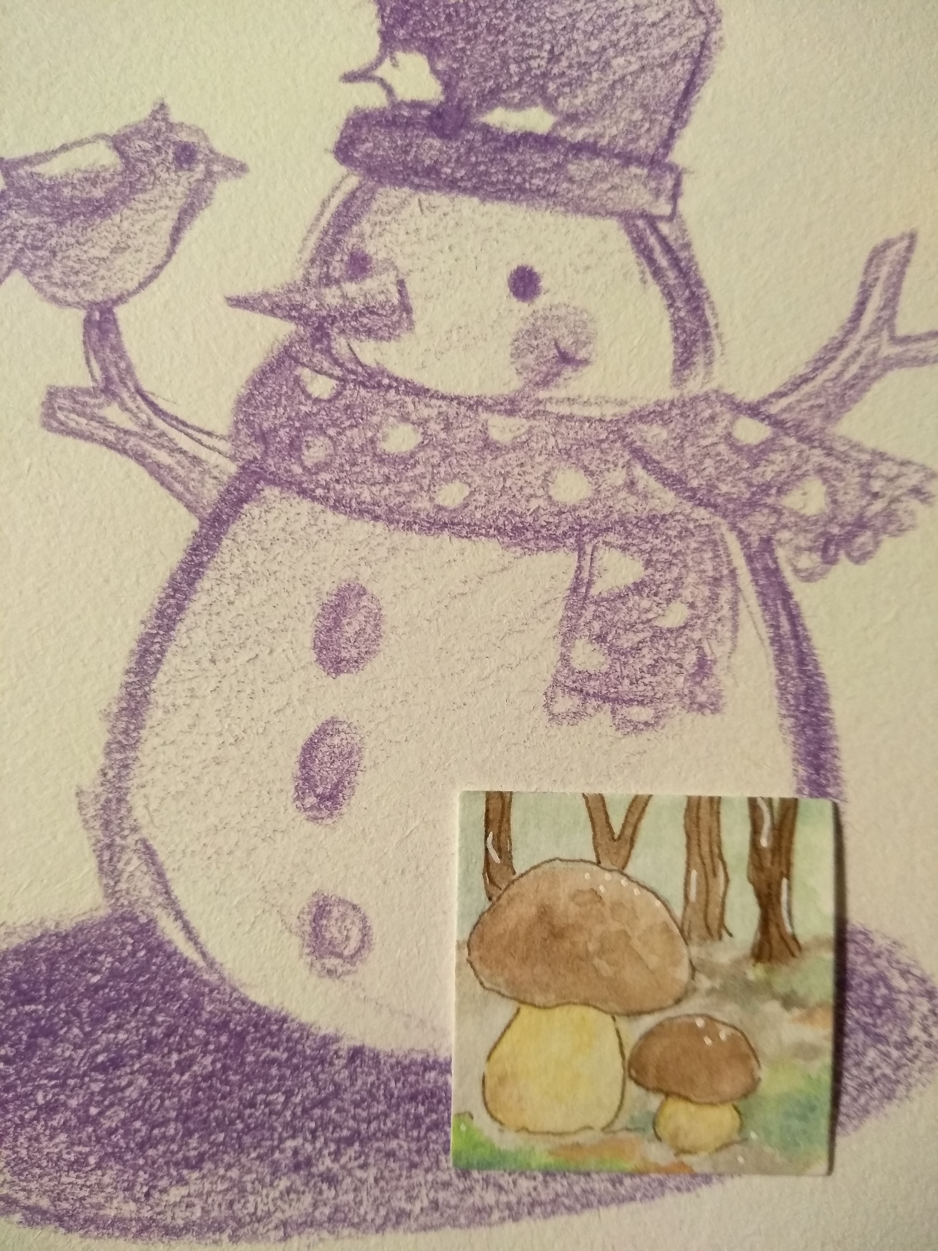 Und von @SceaDeNight habe ich einen Schneemann bekommen. Da muss ich leider ein kleines Missgeschick melden, denn wie man sieht, klebt dem Schneemann etwas Grünes im Gesicht und das ist ein Stück vom Umschlag, in dem das Inchie lag :( kriege es auch nicht ab…ob da ein Kleberest Schuld dran hat?