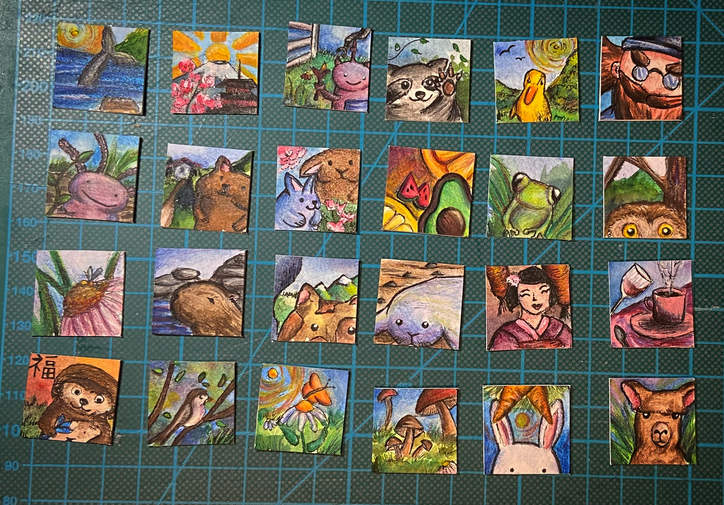Ich dachte ich geb mal ein kleines Update zu meinen Inchies, ich hab 12 Stück fertig und 3 sind im der WIP-Phase. Ich bin zuversichtlich dass ich die nächsten zwei Wochen fertig bin, auch wenn noch zwischendurch einige andere Sachen malen muss. Aber es läuft iwie. :D