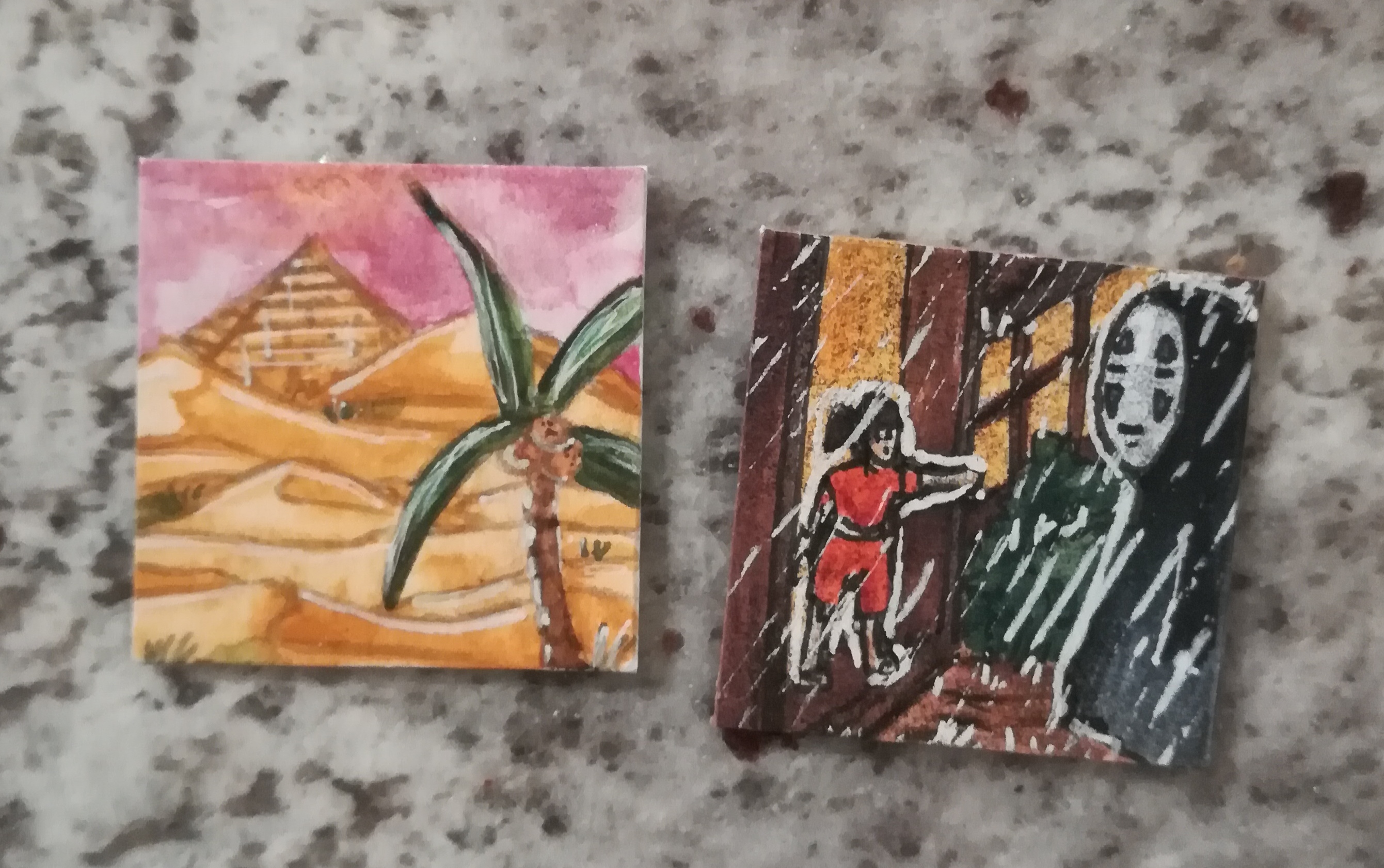Am Nikolausi hab ich eine zauberhafte, ganz pastellig-zarte Japan-Landschaft mit Fuji-san und KirschblĂŒten von @Minzbollchen bekommen (die sich leider nicht so gut fotografieren lĂ€sst, sorry!)