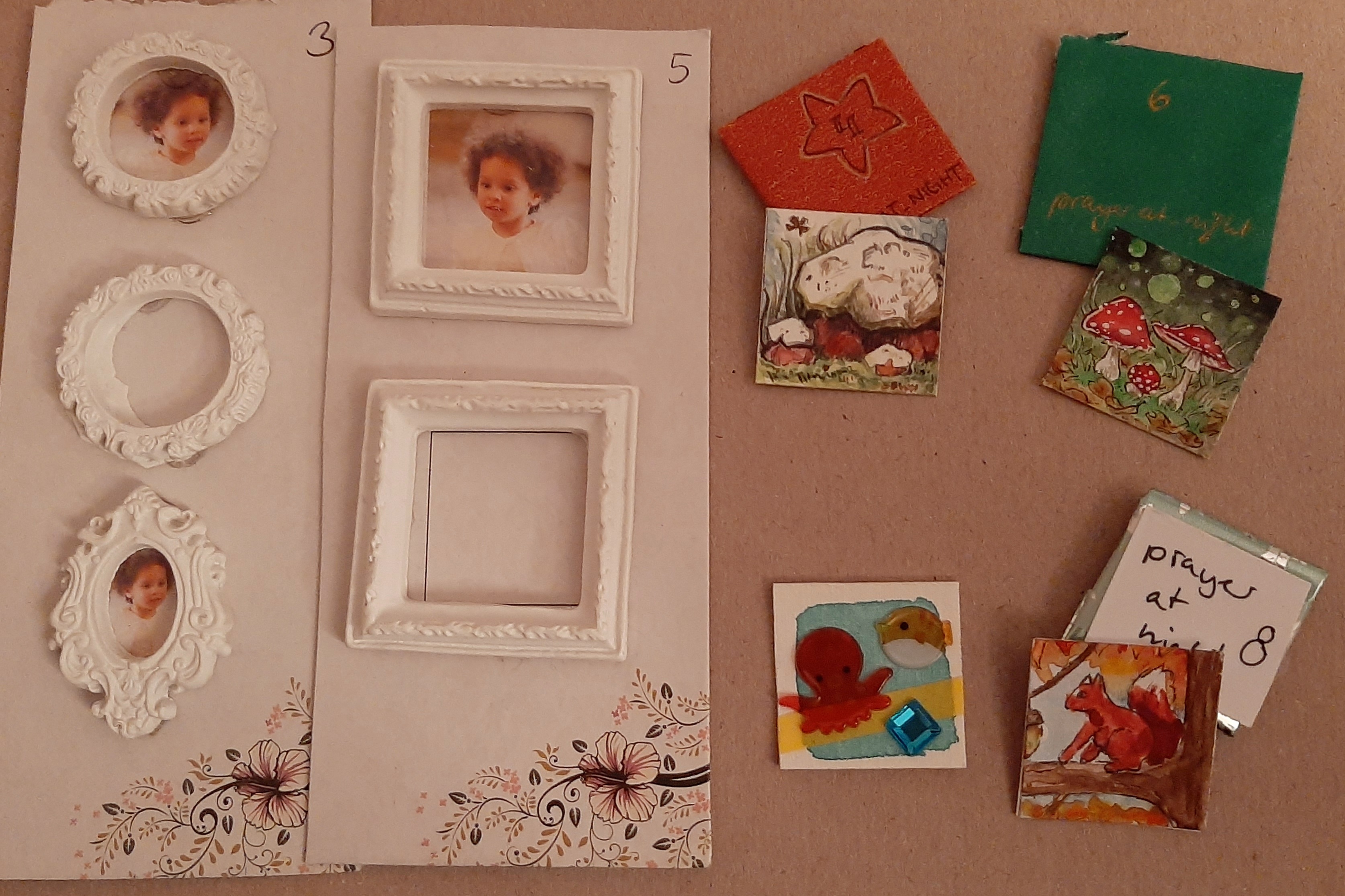 Von der lieben @JackyArt (richtig?) gabs diese zauberhaften kleinen Rahmen zum basteln! Da ich in letzter Zeit Bock auf Leinwand und größere Formate und so hab, passt das sehr cool, sowas macht bestimmt einen tollen Hingucker in Mixed-Media-Bildern. :D