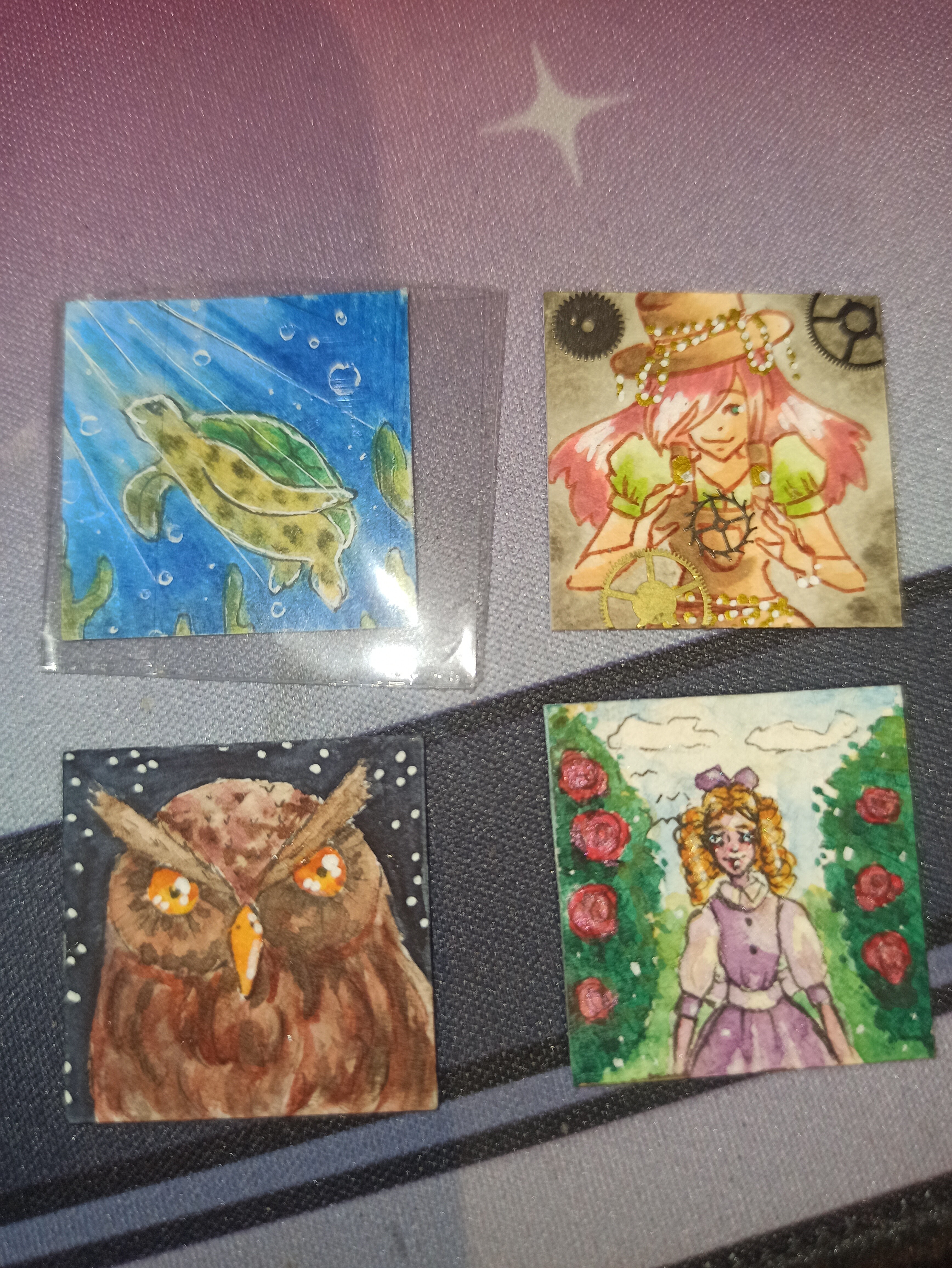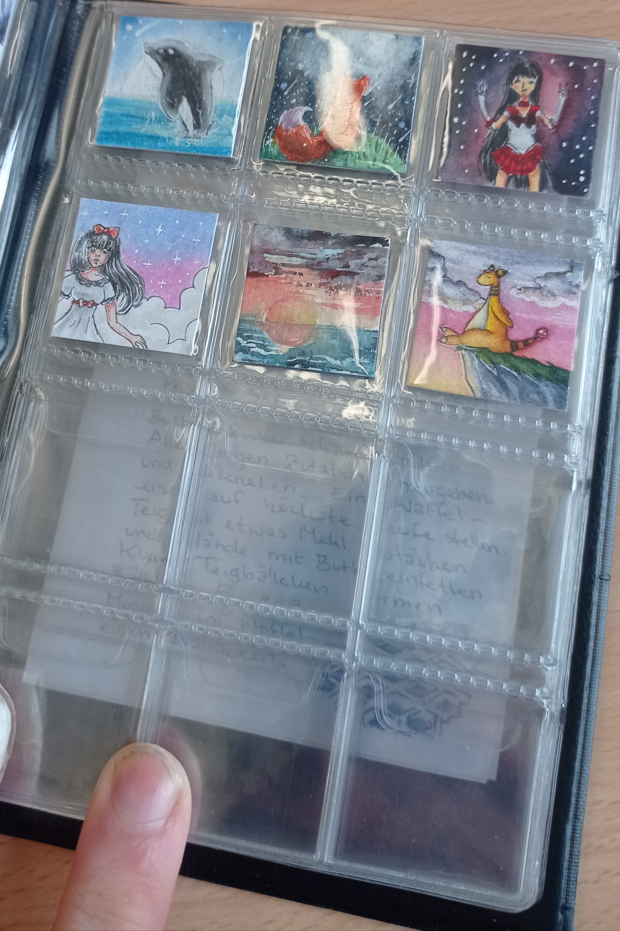 Und jetzt mal noch ne allgemeine Frage… Wie lagert ihr eure Inchies? Im Kakao-Karten Ordner? Wo anders? Ich kann sie ja schlecht für immer auf der Kommode liegen lassen wo sie jetzt sind. Schon allein wegen dem Kater geht das nicht xD