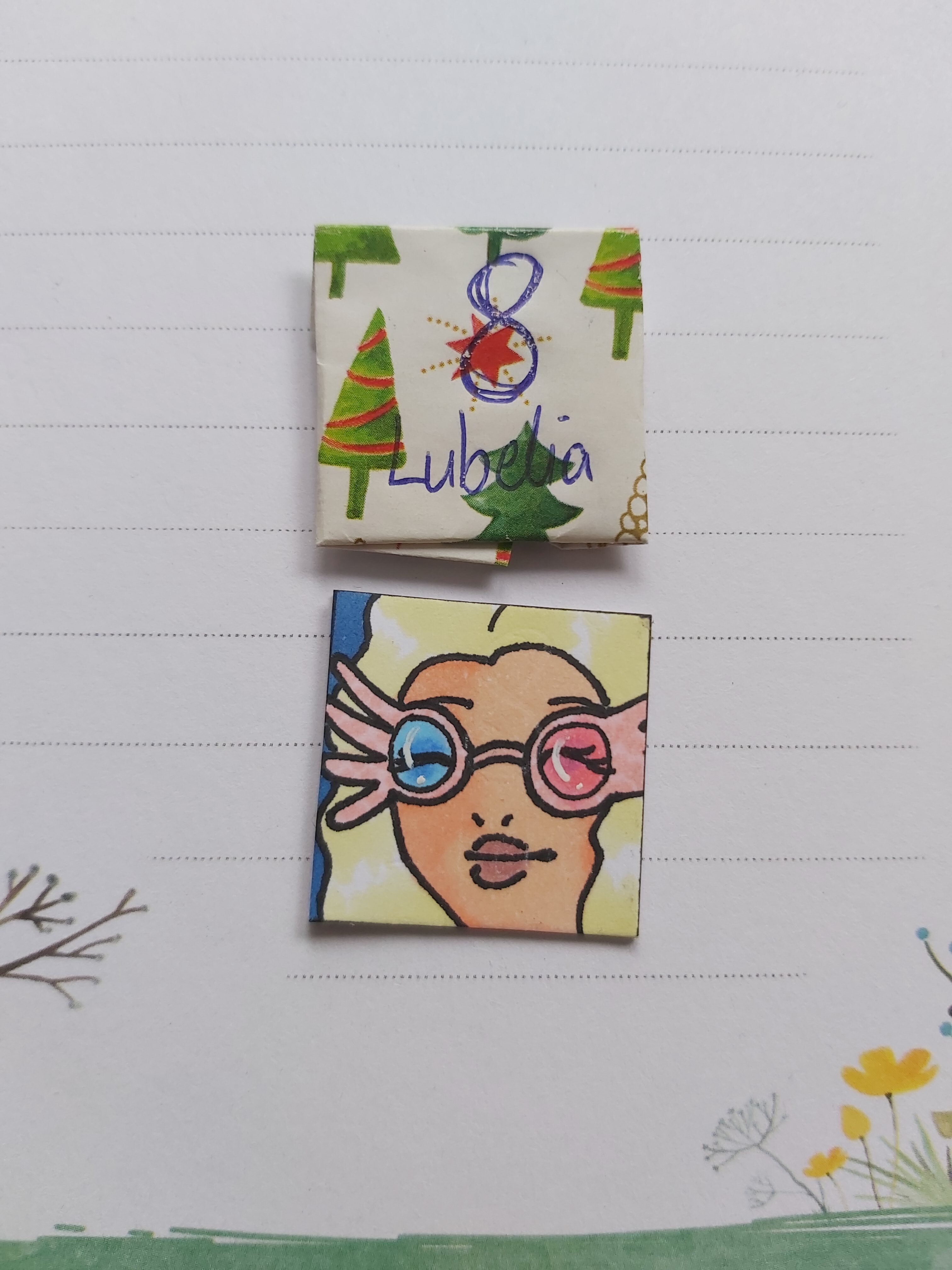 Leider hat der Kulli beim beschriften ziemlich durch gedrückt, vielleicht nächstes Mal einen anderen Stift verwenden, damit die kleinen Bilder nicht beschädigt werden.