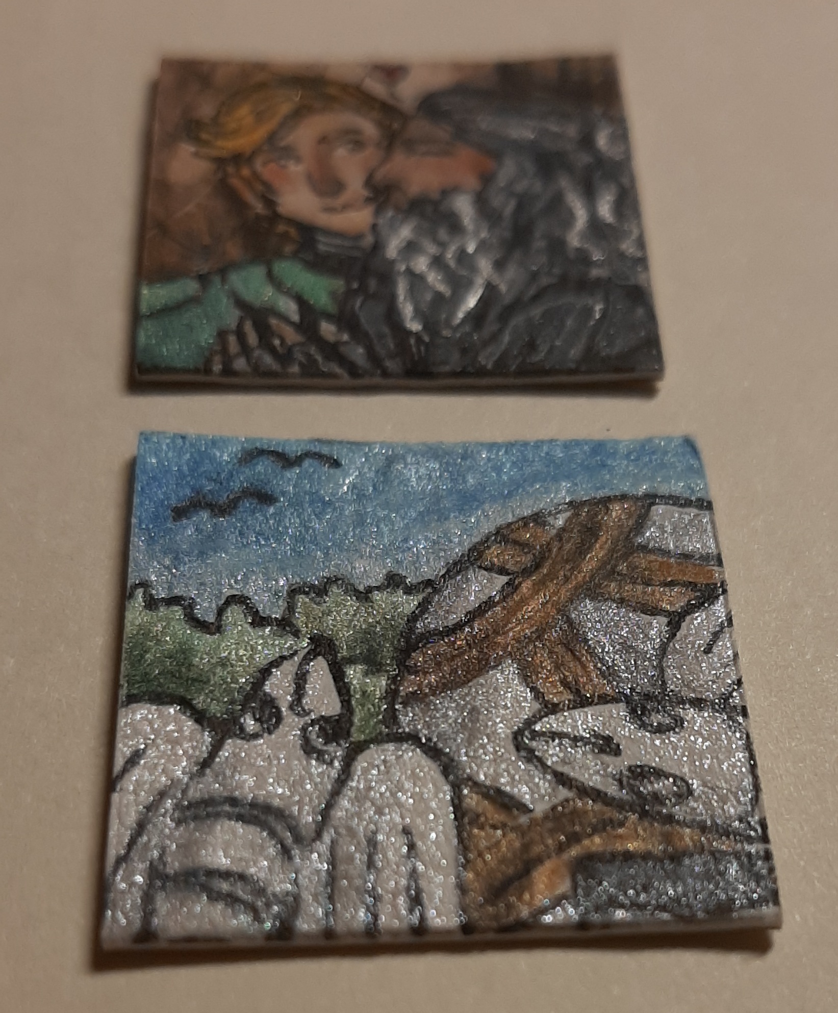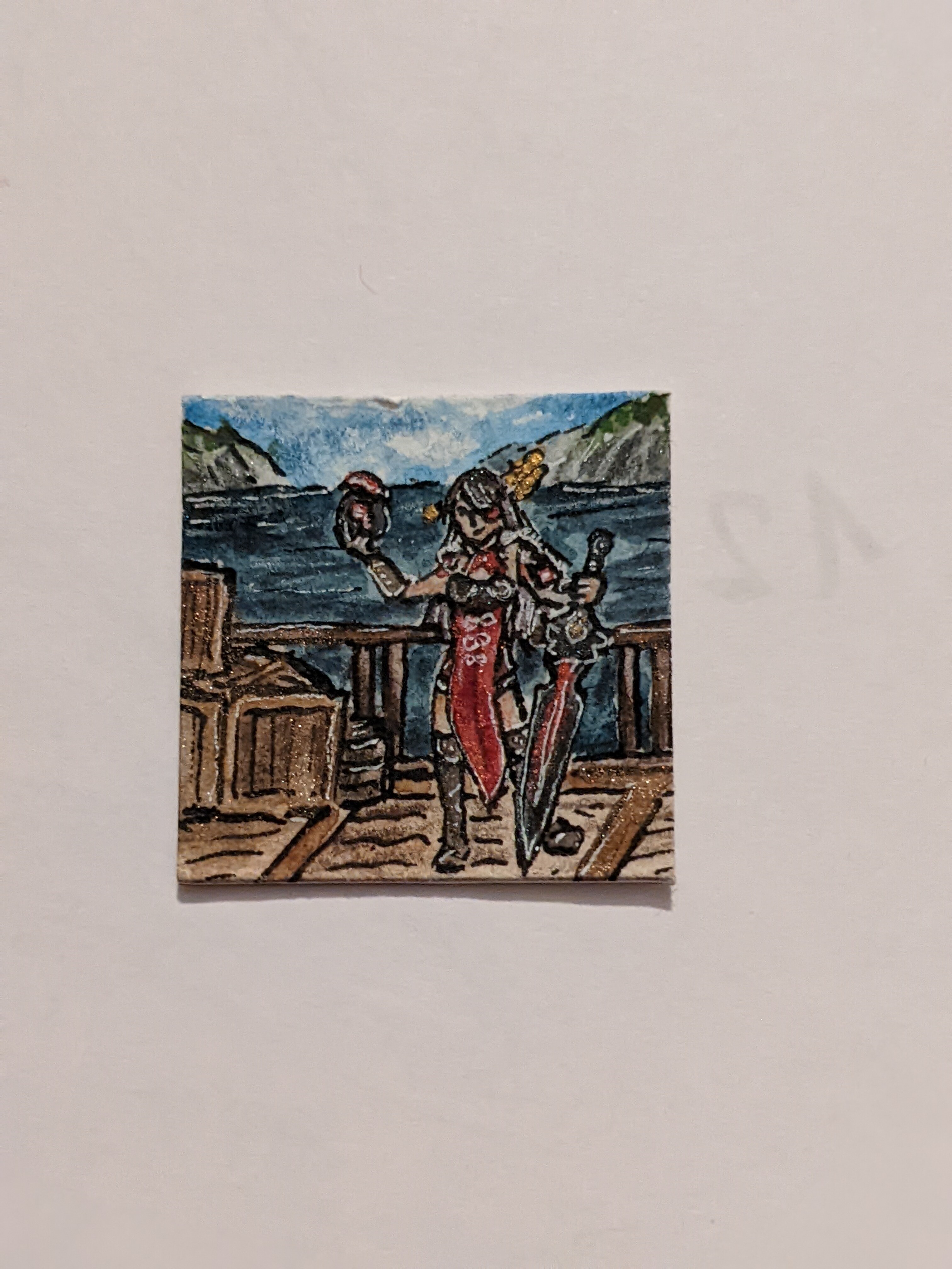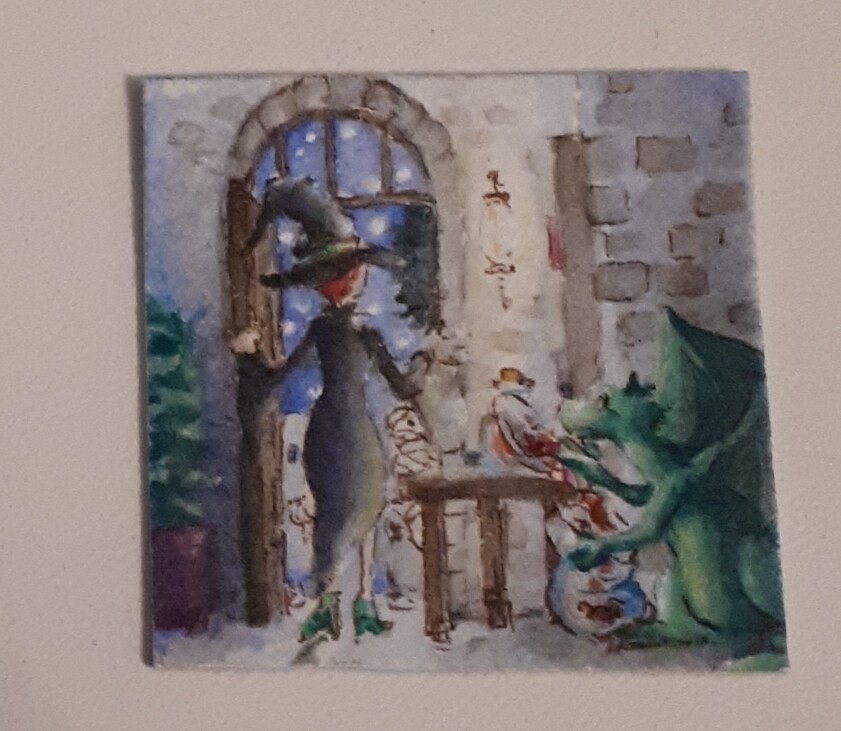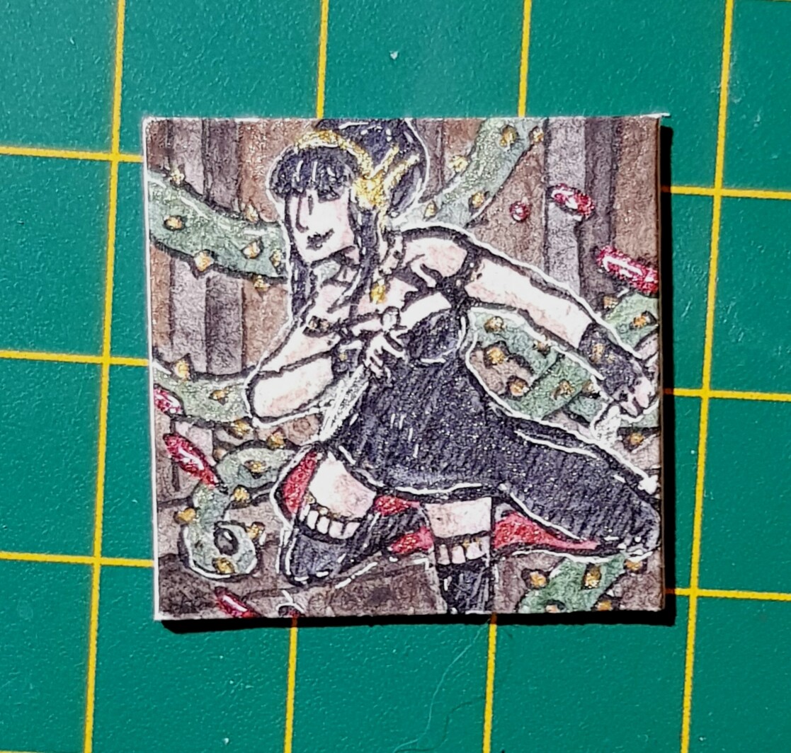 Zum Nikolaus gab es eine sehr detaillierte Harpyie von @Cynerius die entweder wie ich zuerst dachte auf umtosten Klippen sitzt oder aber, was vielleicht wahrscheinlicher ist, aud dem Gipfel eines Berges in einem Meer aus Wolken. Beide Ideen mag ich sehr und das Inchie gefällt mir wirklich gut, vielen dank!