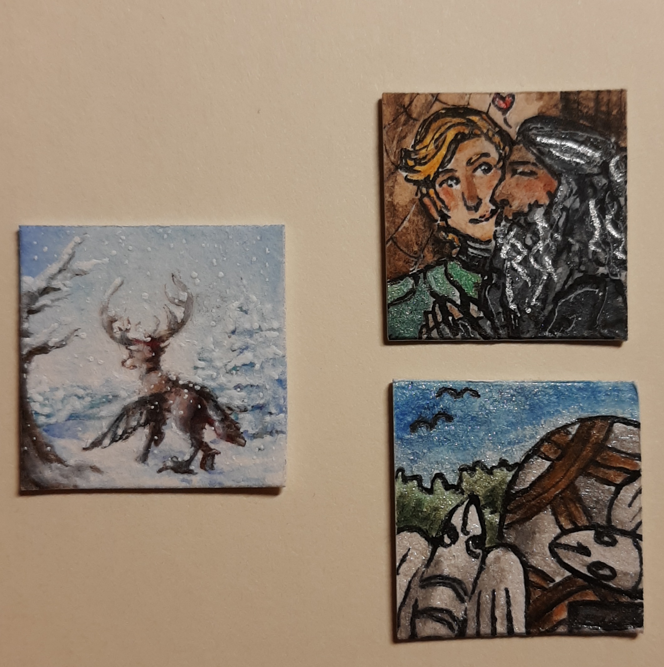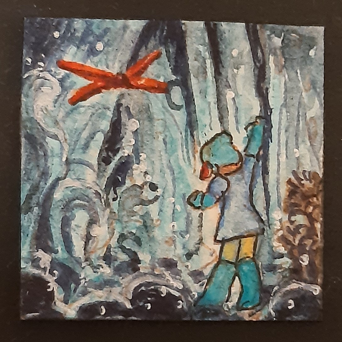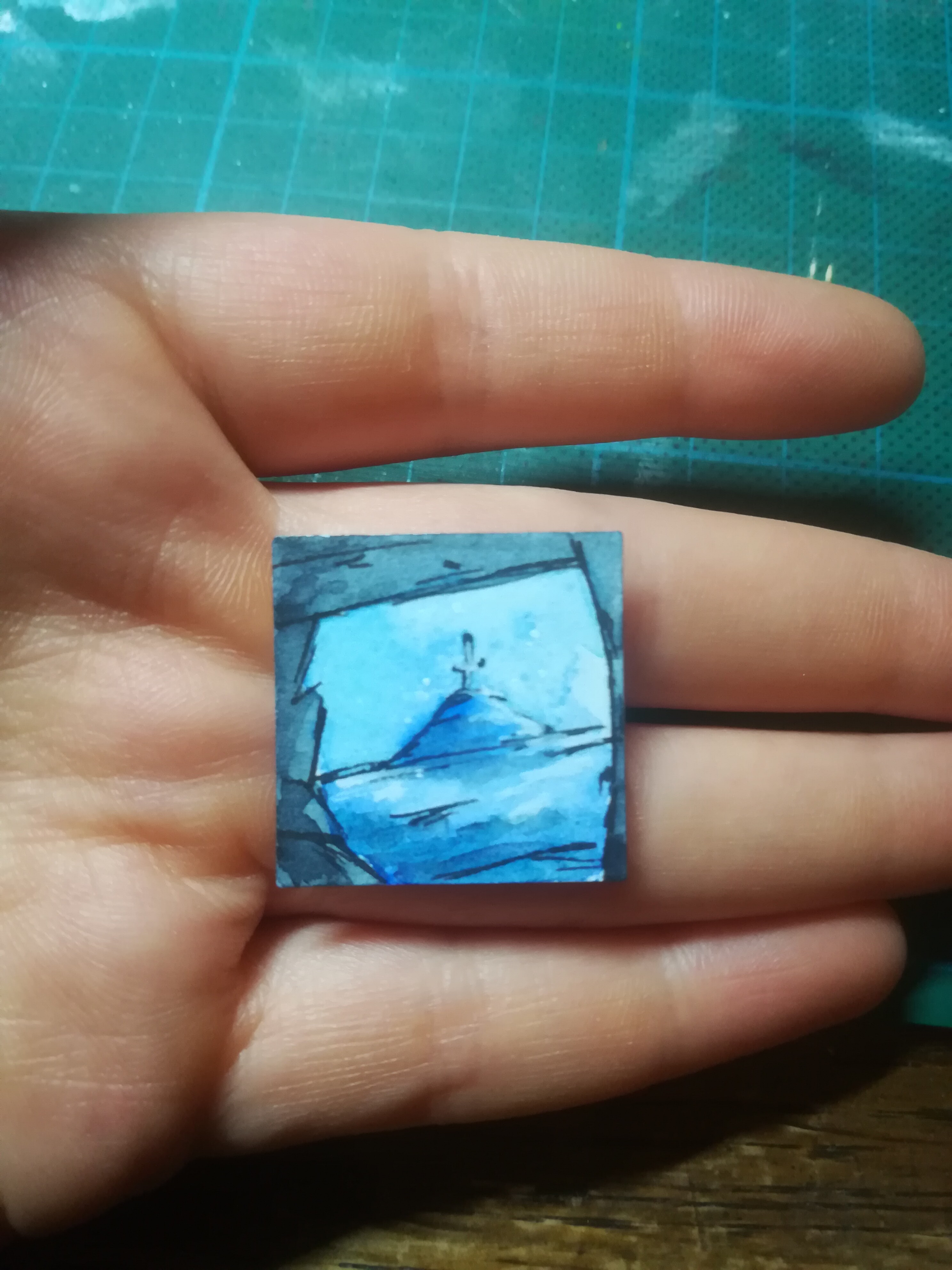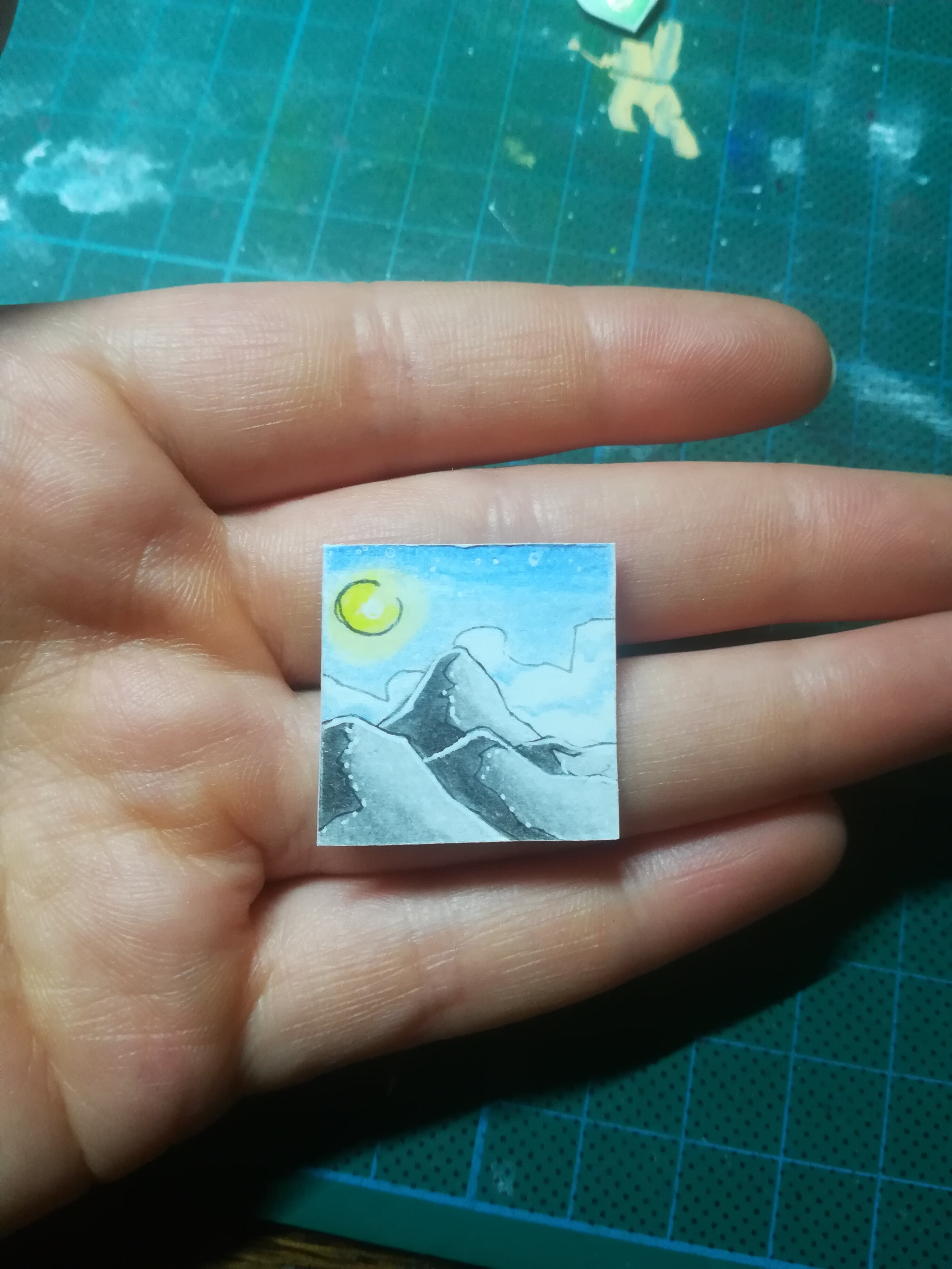 Zum Nikolaus gab es eine sehr detaillierte Harpyie von @Cynerius die entweder wie ich zuerst dachte auf umtosten Klippen sitzt oder aber, was vielleicht wahrscheinlicher ist, aud dem Gipfel eines Berges in einem Meer aus Wolken. Beide Ideen mag ich sehr und das Inchie gefällt mir wirklich gut, vielen dank!