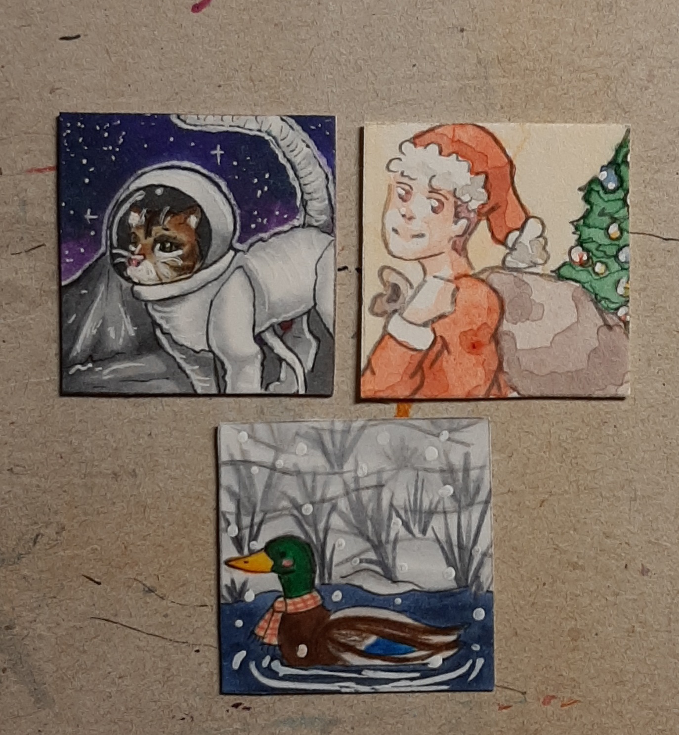 Eine coole Space Cat von @Torika , yay! Ein cuter Santa von @BrightlyShine und eine knuffige Ente mit Schal von @oO-bittersweet-Oo