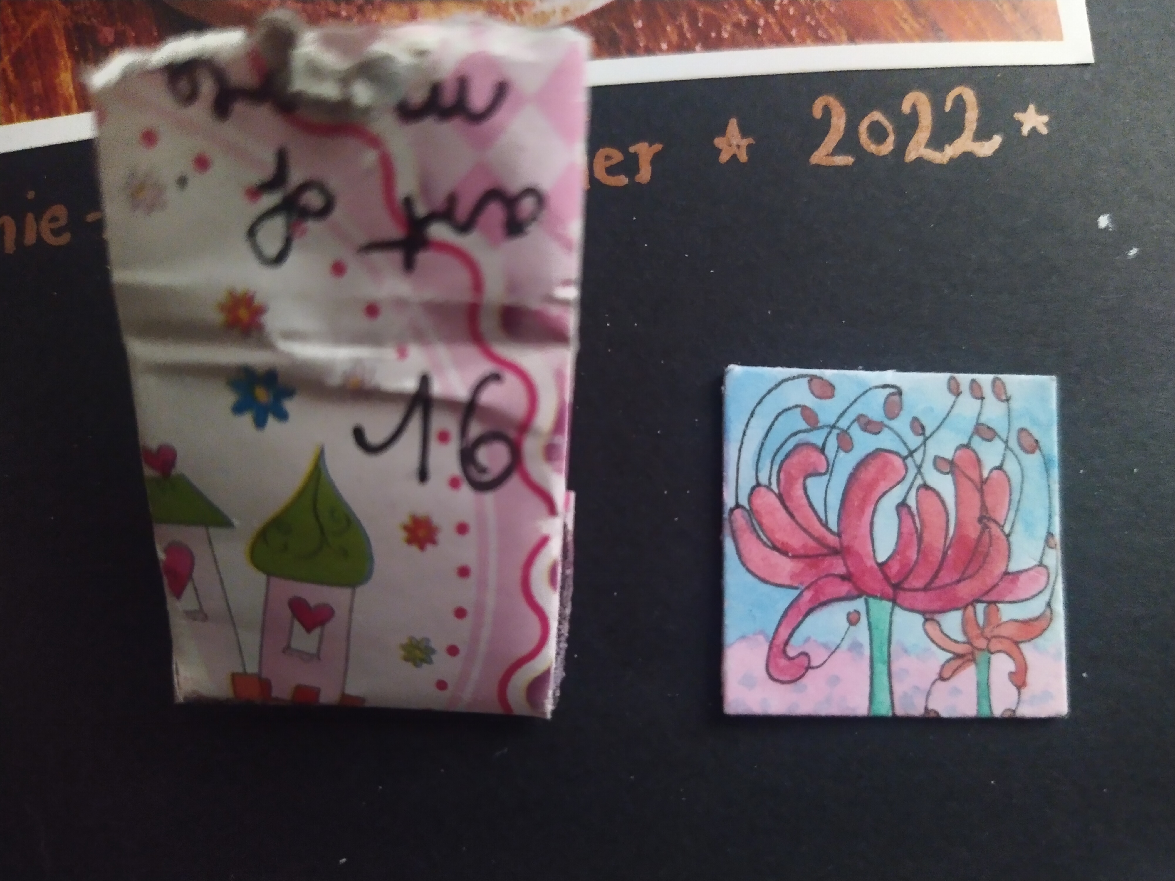 Hinter dem 13. Türchen entdeckte ich eine Siedlung umgeben von Bergen und Wüstensand. Wie gerne würde ich nichts anderes tun als einfach nur die Welt zu entdecken. Vielleicht finde ich solch einen Ort auch mal auf eine meiner Reisen :) Auch ein paar schöne Sticker versteckten sich hinter dem Türchen. Vielen lieben Dank @anon89678341. Ich habe mich sehr darüber gefreut ^-^