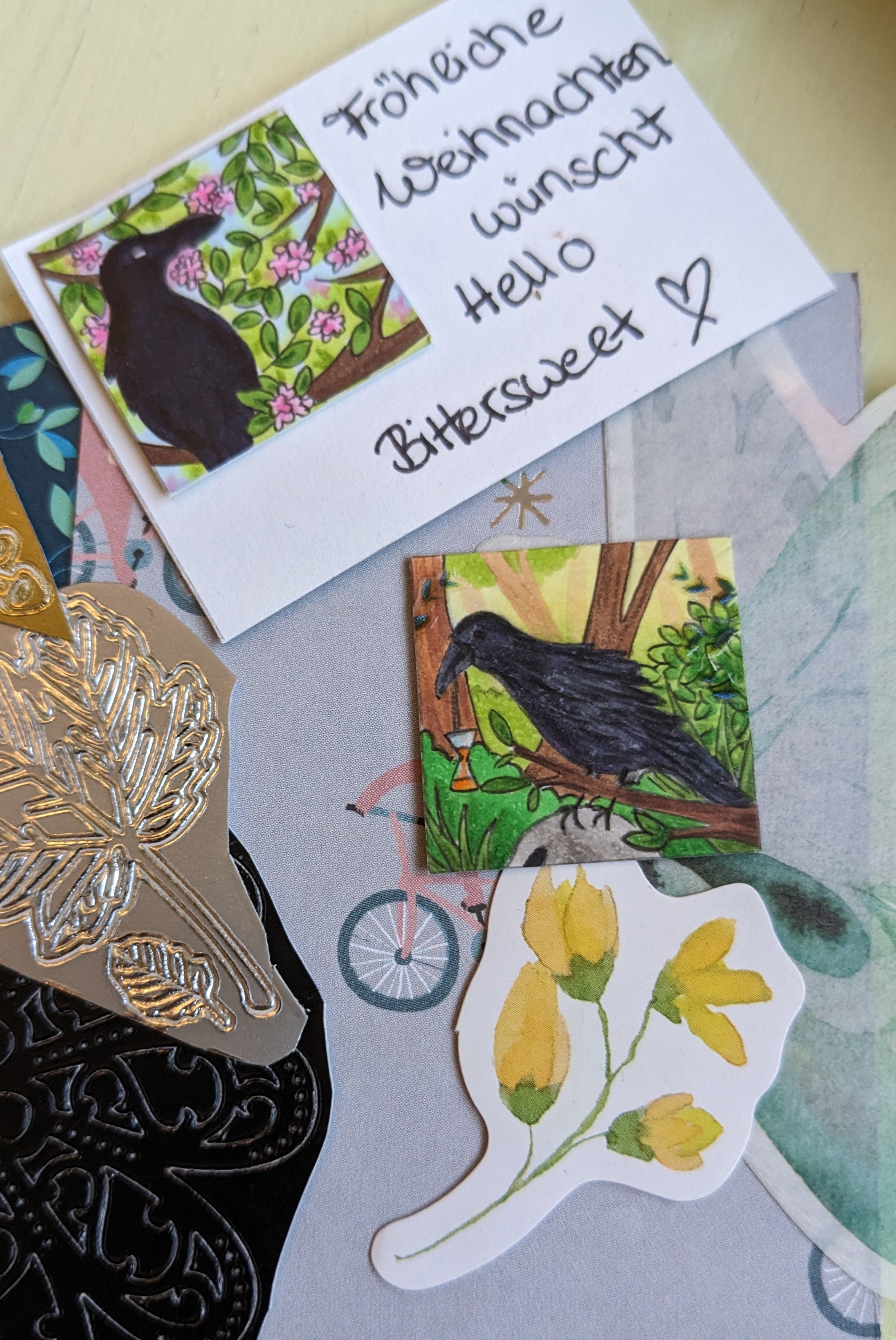 Am Montag erwartete mich nicht nur ein Inchie, sondern gleich zwei. Eine Kirschblüten-Krähe als Beigabe und die düstere Version mit Schädel war regulär im Kalender verbaut. Beide haben ihren Charme. Und zusätzlich gabs noch tolle Sticker. Herzlichen Dank
