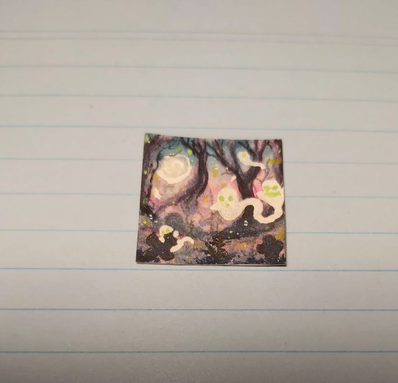 Hier durfte ich dieses spoopy Inchie auspacken :) Trifft total meinen Geschmack :3 Ich mag die pastelligen Farben des Himmels sehr gerne und wie die Geister im Wald leuchten.