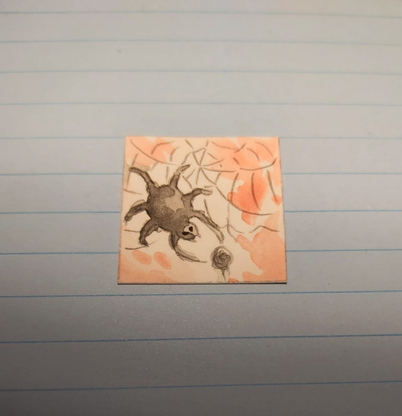 Hier verstecke sich diese kleine Spinne im Türchen. Sie hat schon ein paar Schicksalsschläge hinter sich, sie hat schon ein Beinchen verloren :o Ich mag die simplen Farben des Inchies gerne.