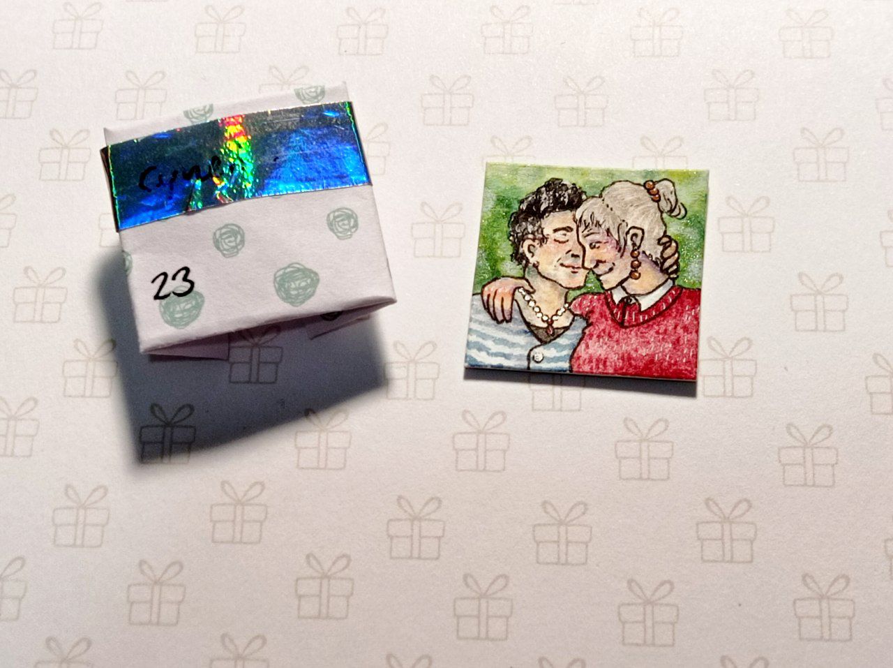 Mich erwartete ein süßes Inchie zu einem der Vorschläge aus meiner Pride Wunschliste - ein älteres lesbisches Pärchen, dass glücklich ihren Lebensabend miteinander verbringt! >v<