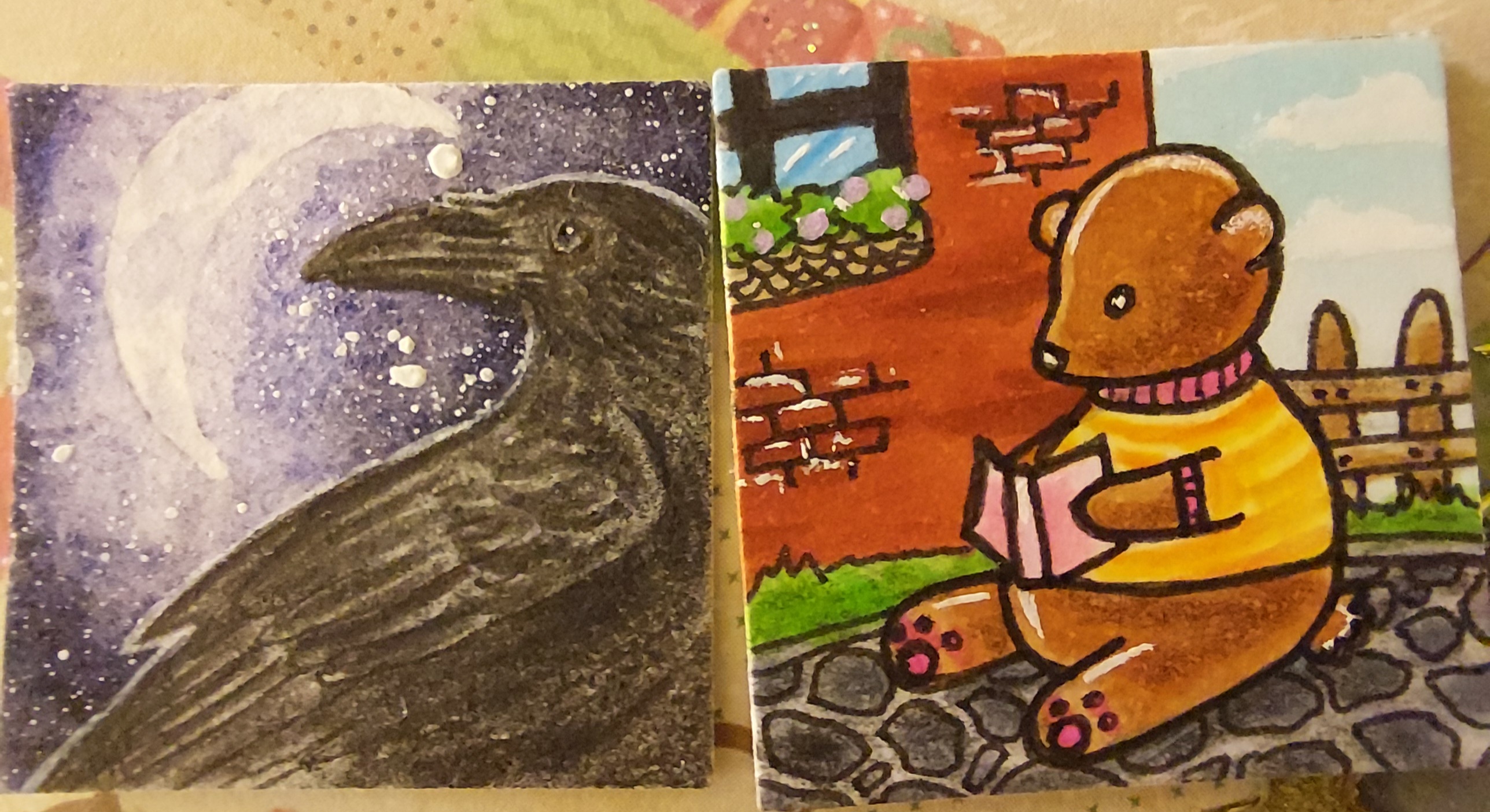 Am 14 gab es einen sehr schönen und filigranen Raben vor einem Sichelmond und am 15. gab es einen zuckersüßen lesenden Bären.