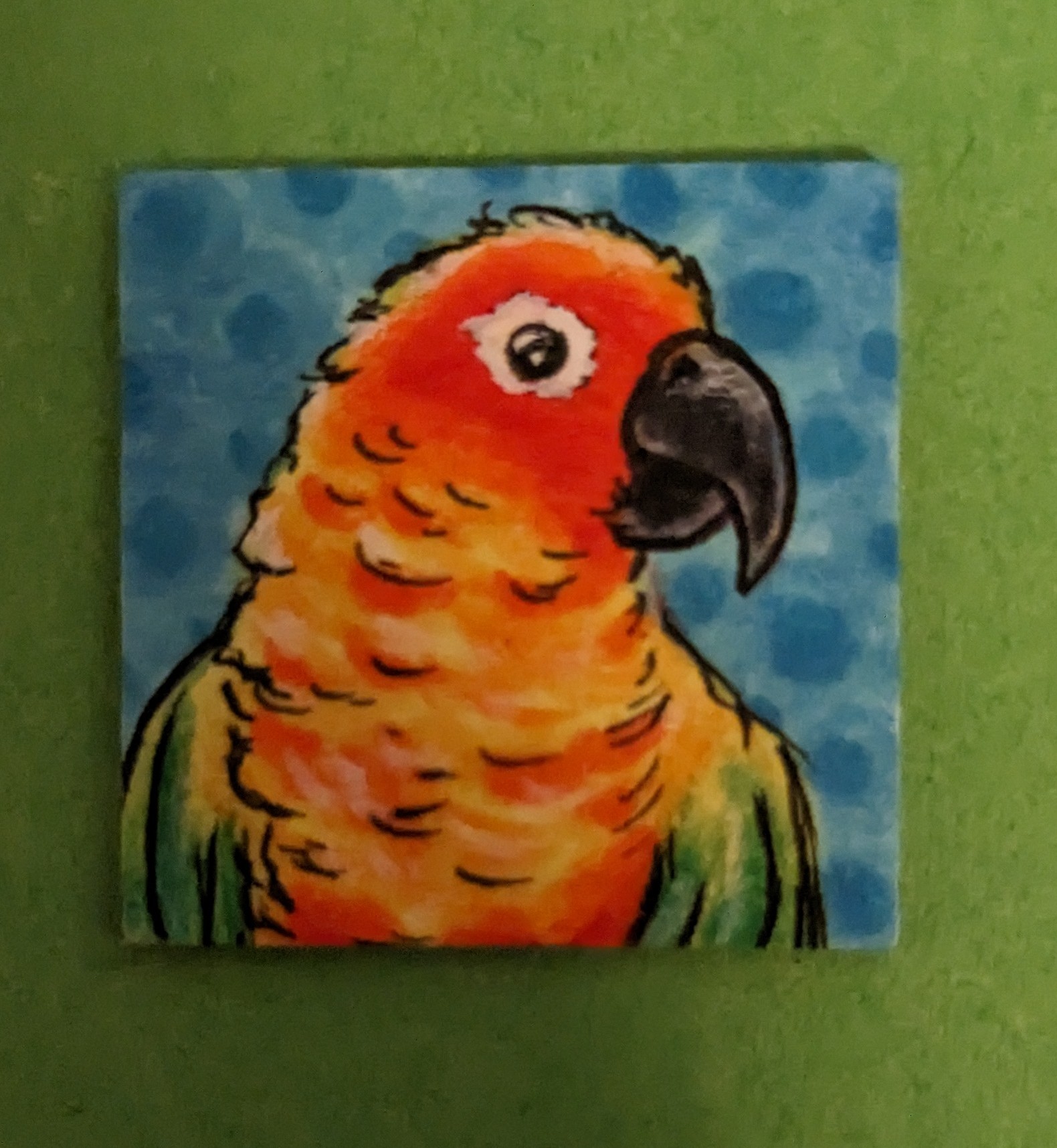 Für mich gab es heute in beiden Kalender Vögelchen. In diesem war es ein wunderschöner Sonnensittich mit tollen leuchtenden Farben: