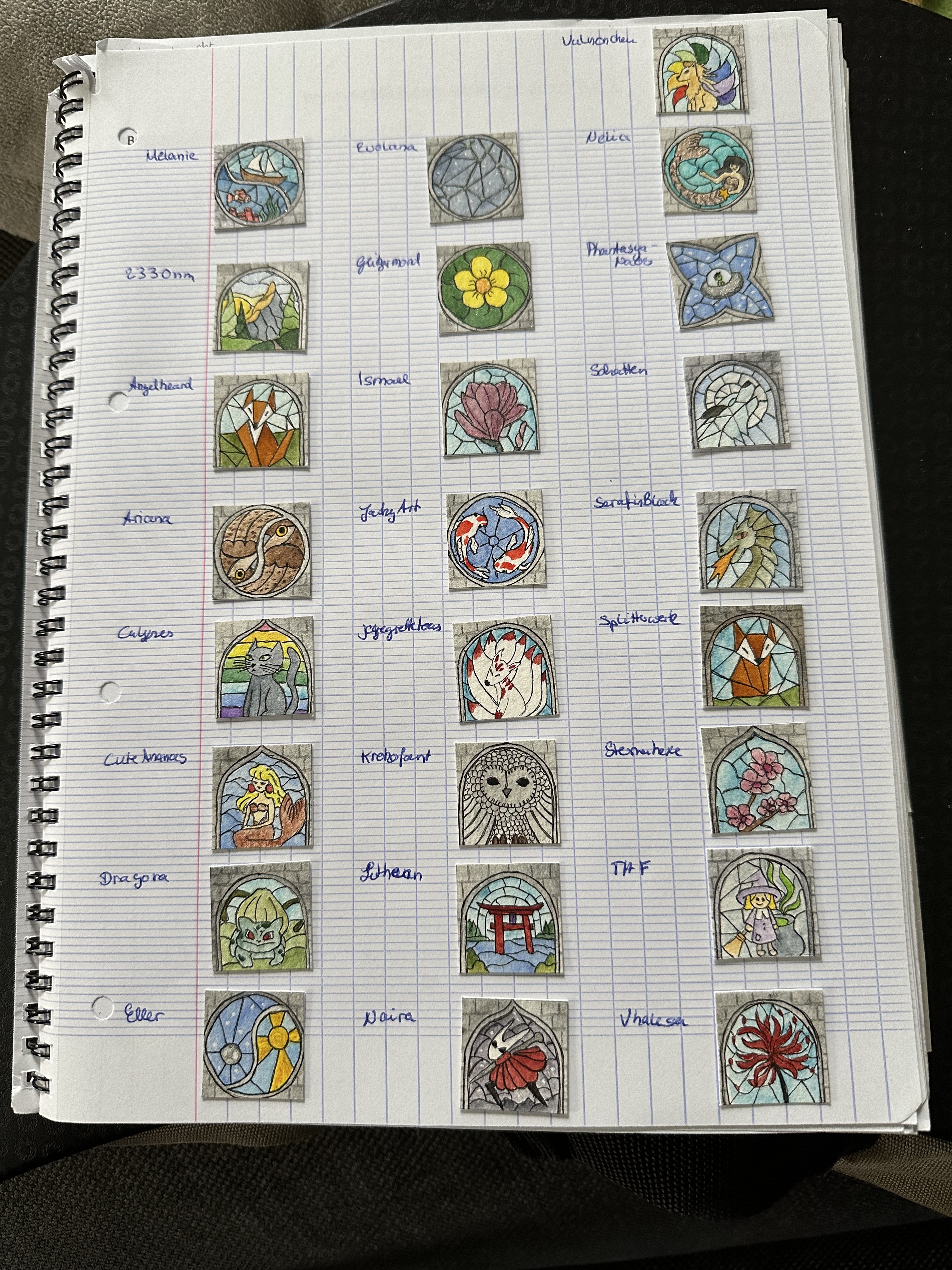 Hier eine Übersicht aller Inchies, die ich bekommen habe, inklusive aller Ersatzinchies: