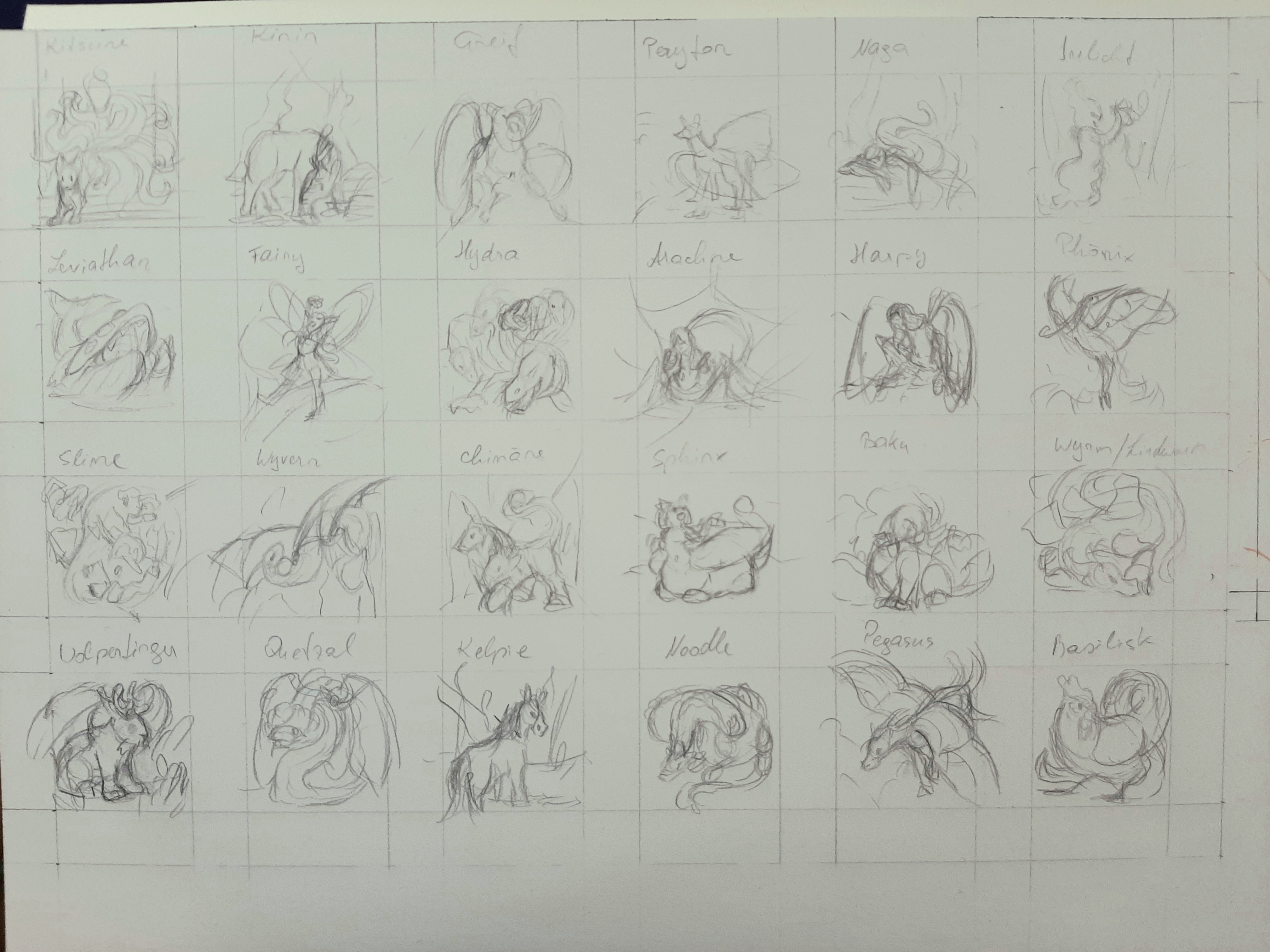 Grobe Skizzen zu später Stunde :D Jetzt schlaf ich erstmal drüber und überlege, ob ich sie nur mit Bleistift ausarbeite + coloriere oder obs bei der Größe schlauer ist, Lines zu ziehen, damit ich keine Linien “verliere” x’D