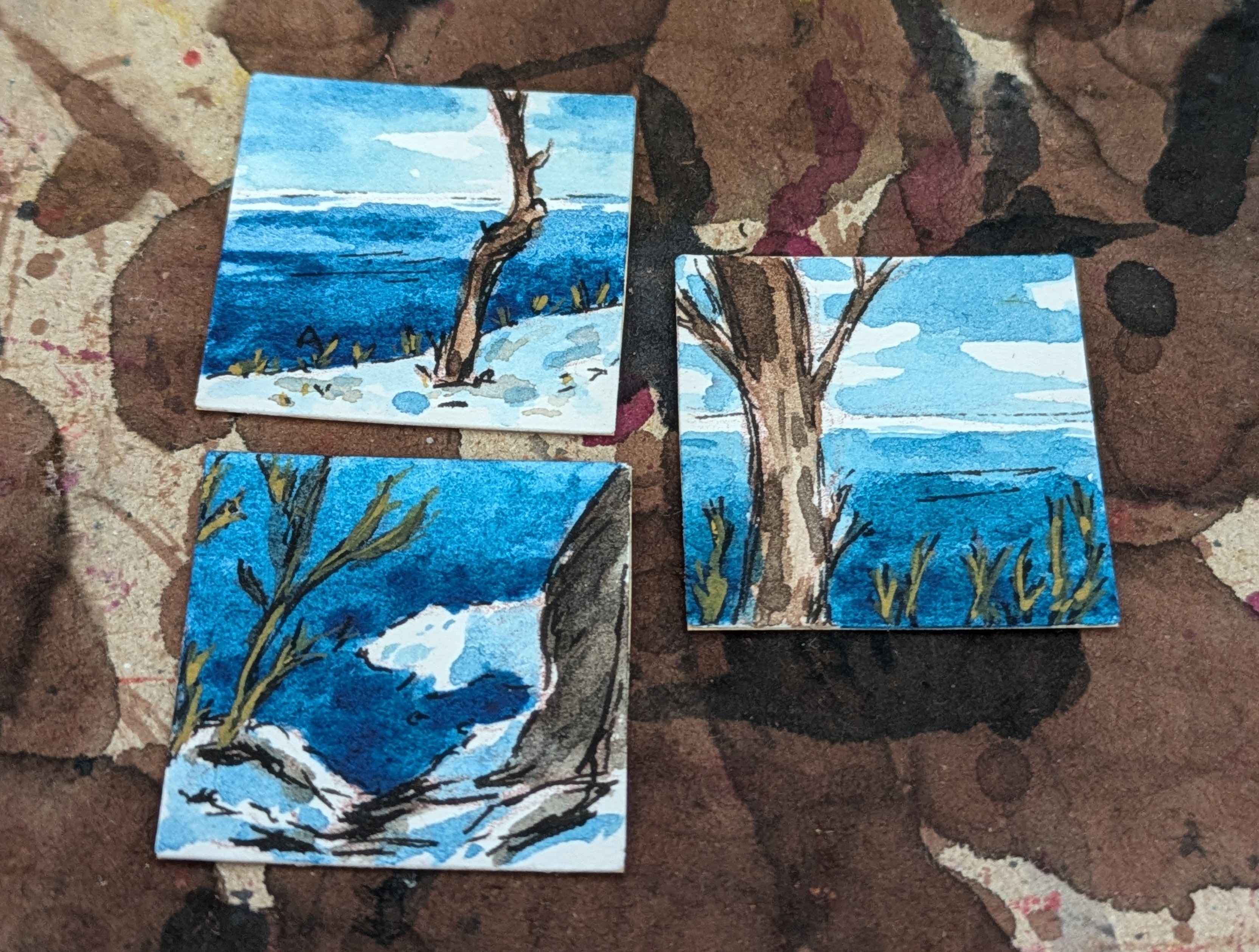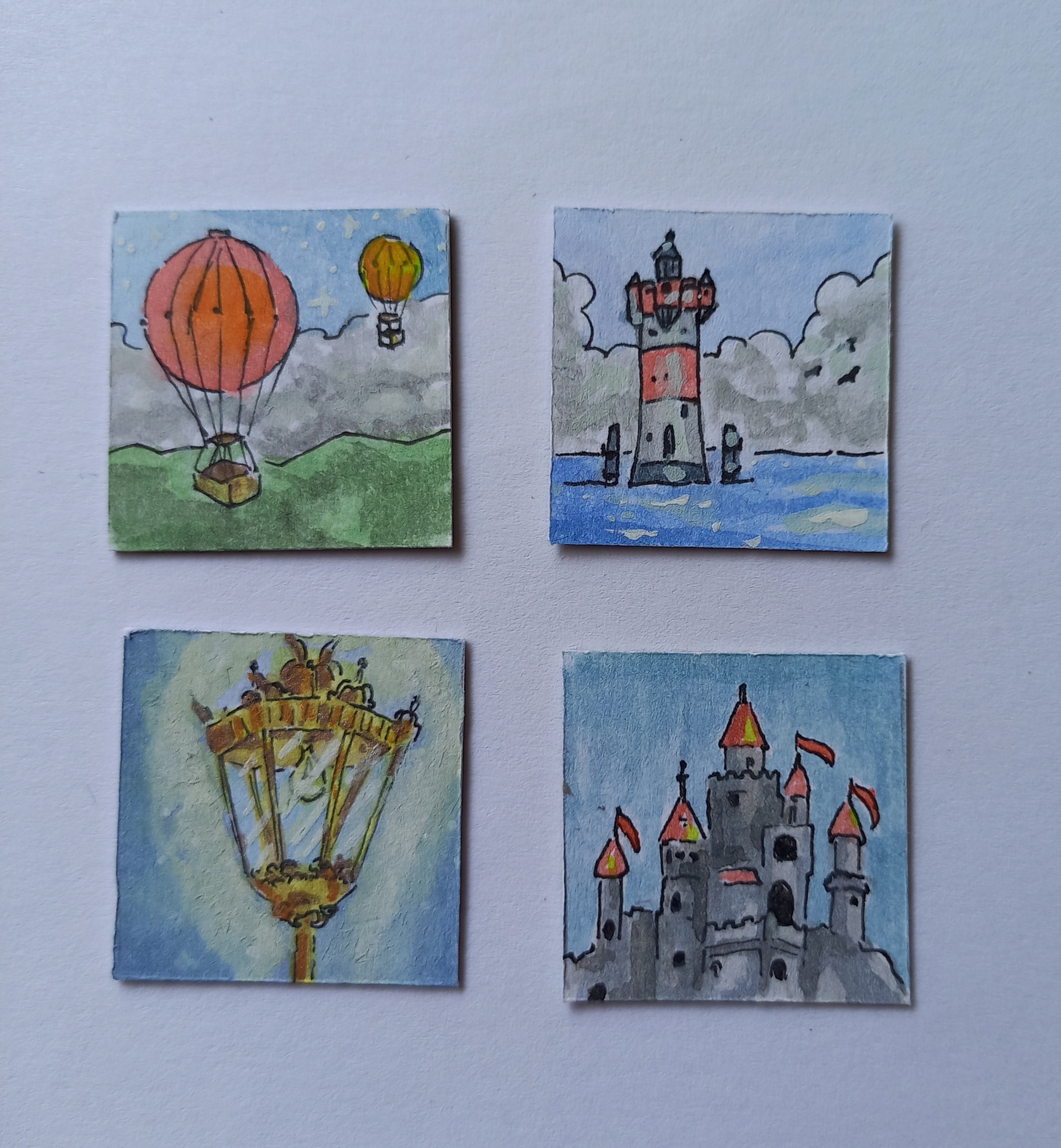 Ich hab gerade spontan die ersten drei fertig coloriert. Hier ist dann schon mal ein (mieses, unscharfes, haha) Foto…