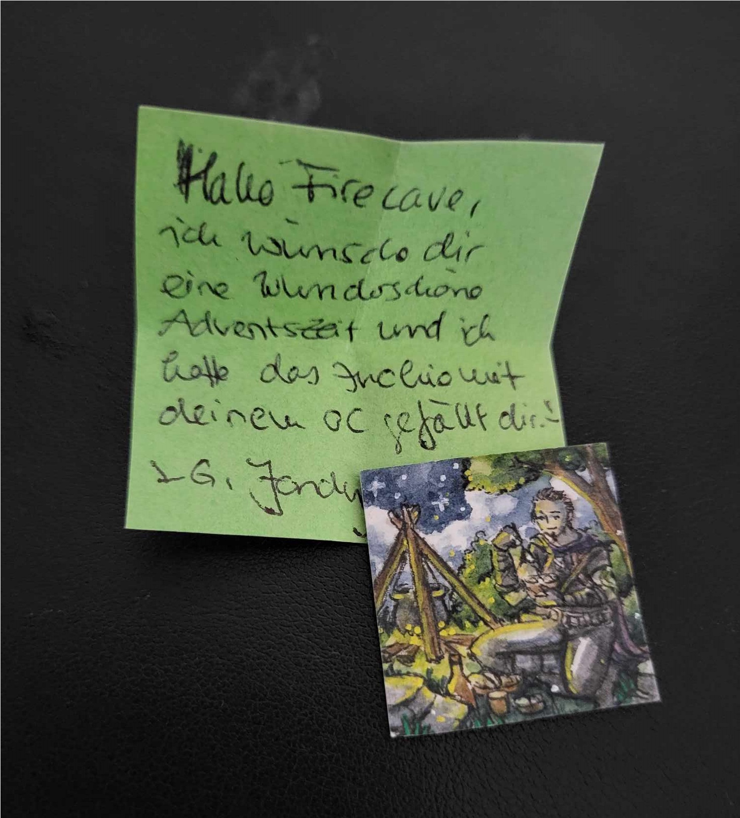 Heute durfte ich meinen Schurken Oc Yarik auspacken. Ich bin echt gerührt davon dass du ihn für mich gemalt hast <3 Vorallem diese kleinen Details auf so einem wahnsinnigen Mini Format danke! T-T