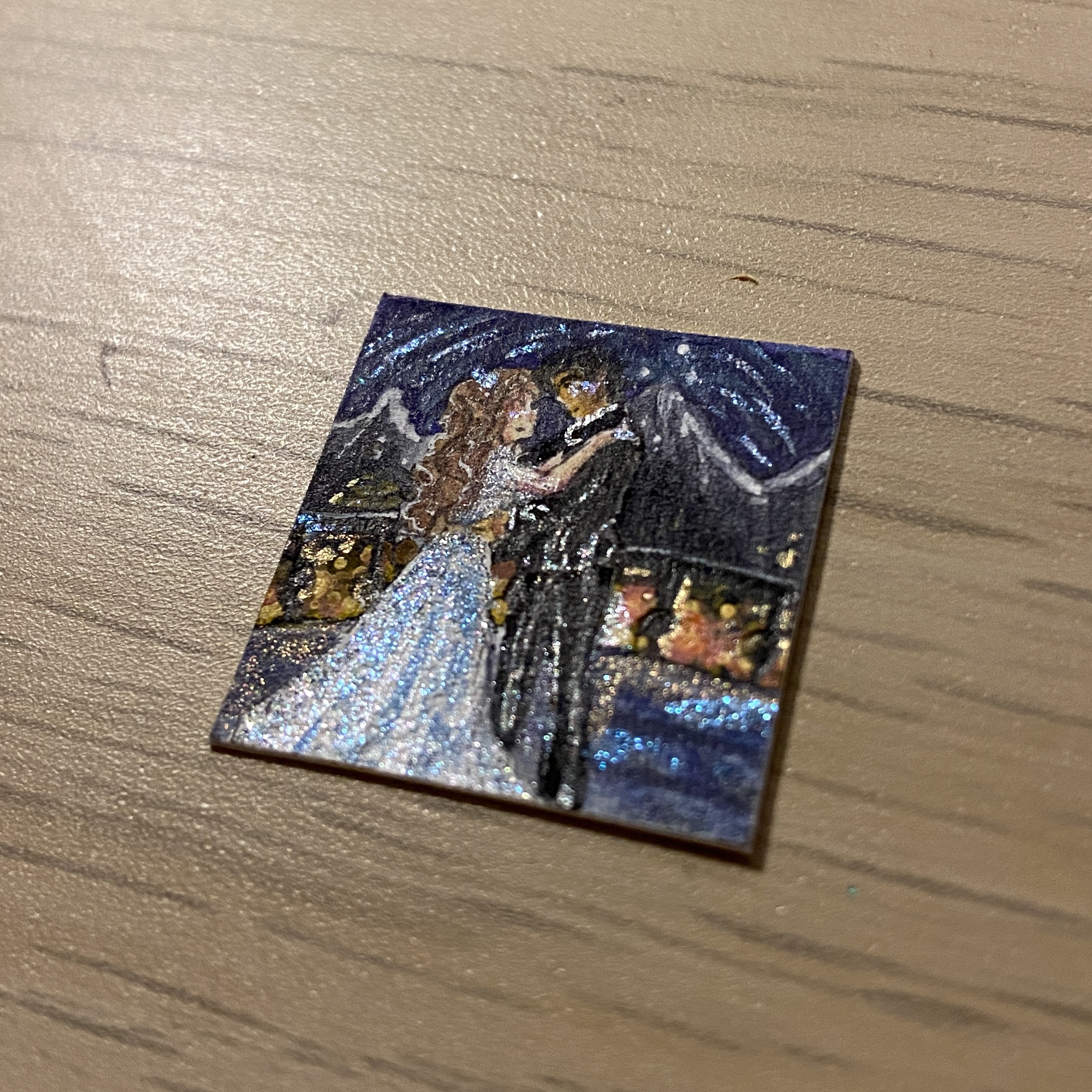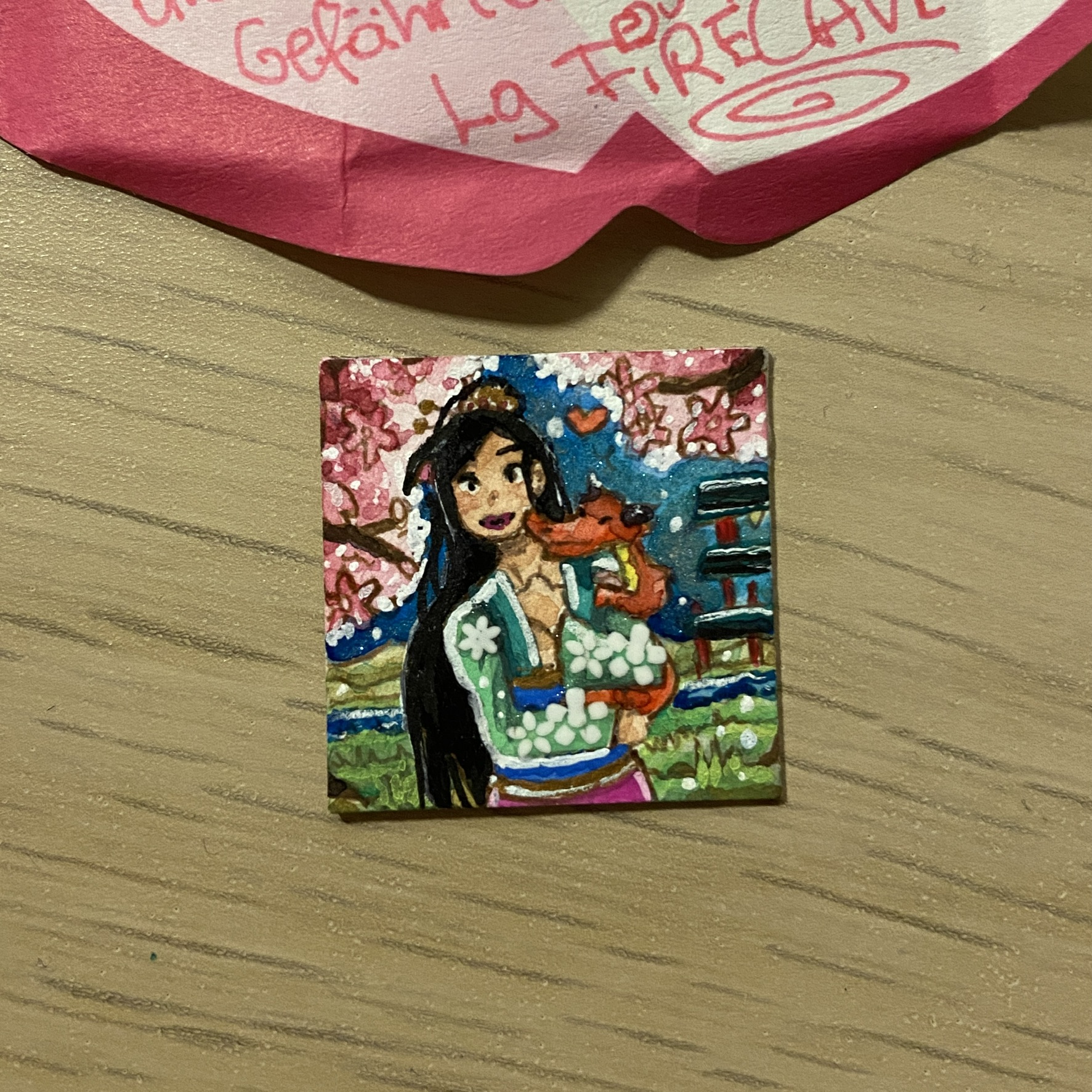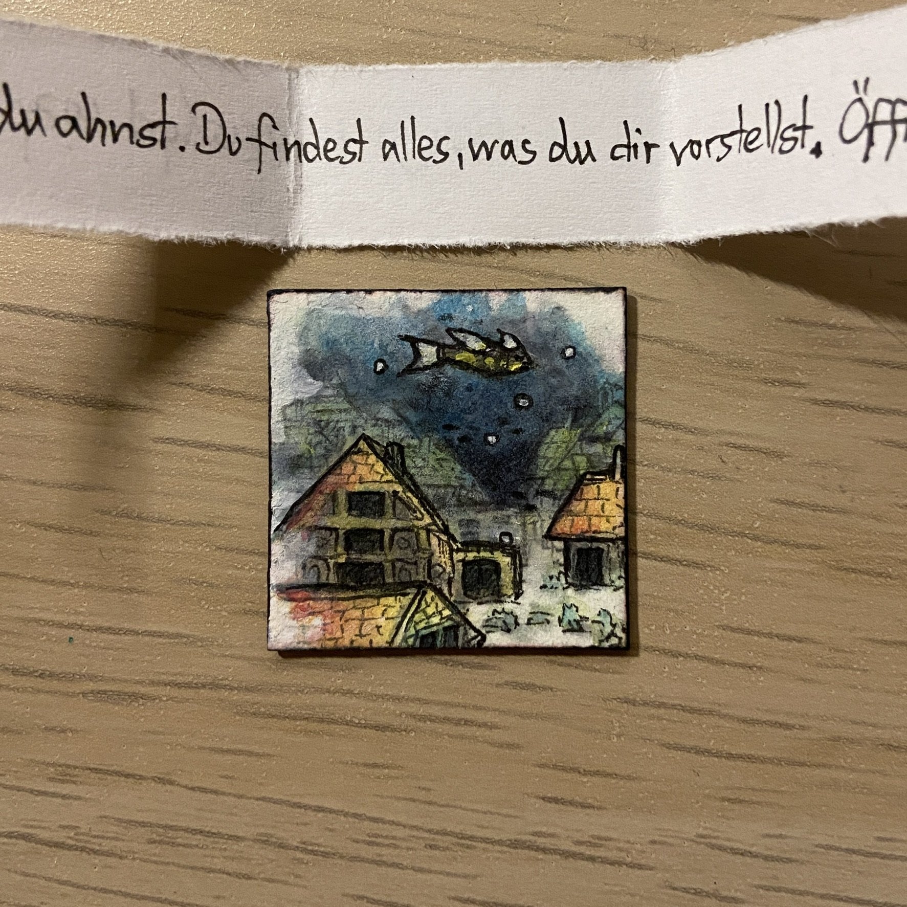 Ok dieses Inchie hat mich gleich zweimal überrascht. Erst habe ich mich mega gefreut, dass ich ein Fanart zu “Die letzten Glühwürmchen” bekommen habe, denn davon habe ich noch gar keins (und da der Film so düster ist, habe ich auch nicht damit gerechnet, eins zu bekommen). Ich hatte mich nur etwas gewundert, wieso das Inchie so dick ist. Irgendwann habe ich einen Spalt an der Seite entdeckt und dachte die Verklebung löst sich… und dann dämmerte es mir und ich habe es auseinander gezogen und es ist einfach ein Klapp-Inchie