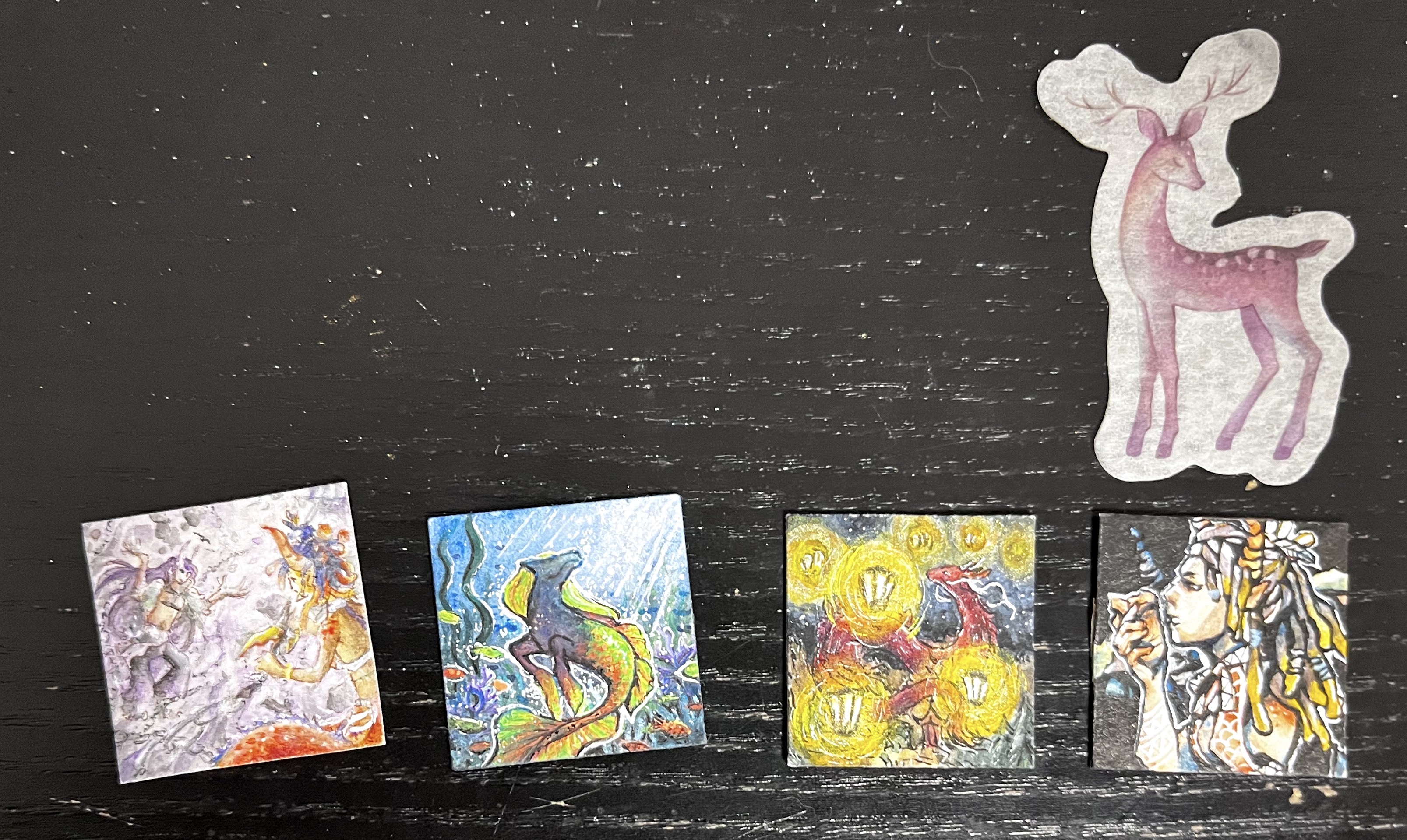 Heute durfte ich eine wunderschöne Mara auspacken, wie sie sich einem gigantischen Wesen in Neonfarben nähert. Es läd richtig zum Träumen ein, vielen Dank dafür!