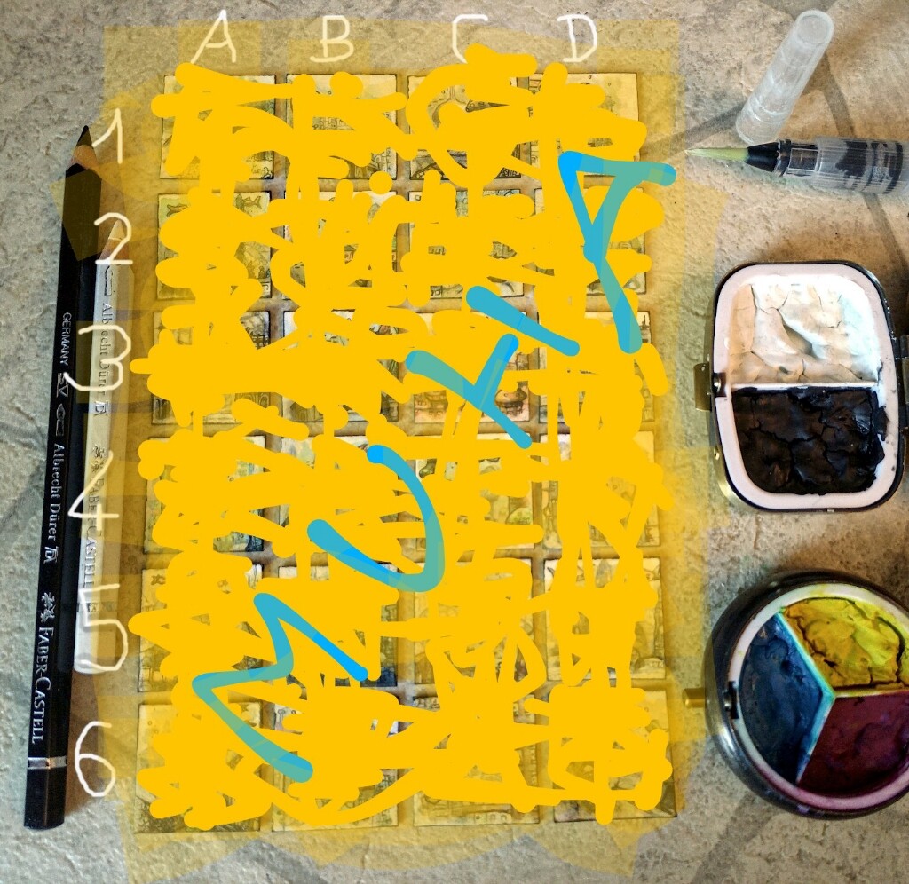 Ich muss aber von meinem ursprünglichen Plan abweichen. Die Idee war ja eine Farbpalette zu erstellen und sie auf die einzelnen Inchies aufzuteilen. Das ist mir aber zu starr, bzw hole ich so nicht das beste aus jedem inchie raus. Dementsprechend mach ich eine grobere Palette und ordne die Inchies eher locker ein.