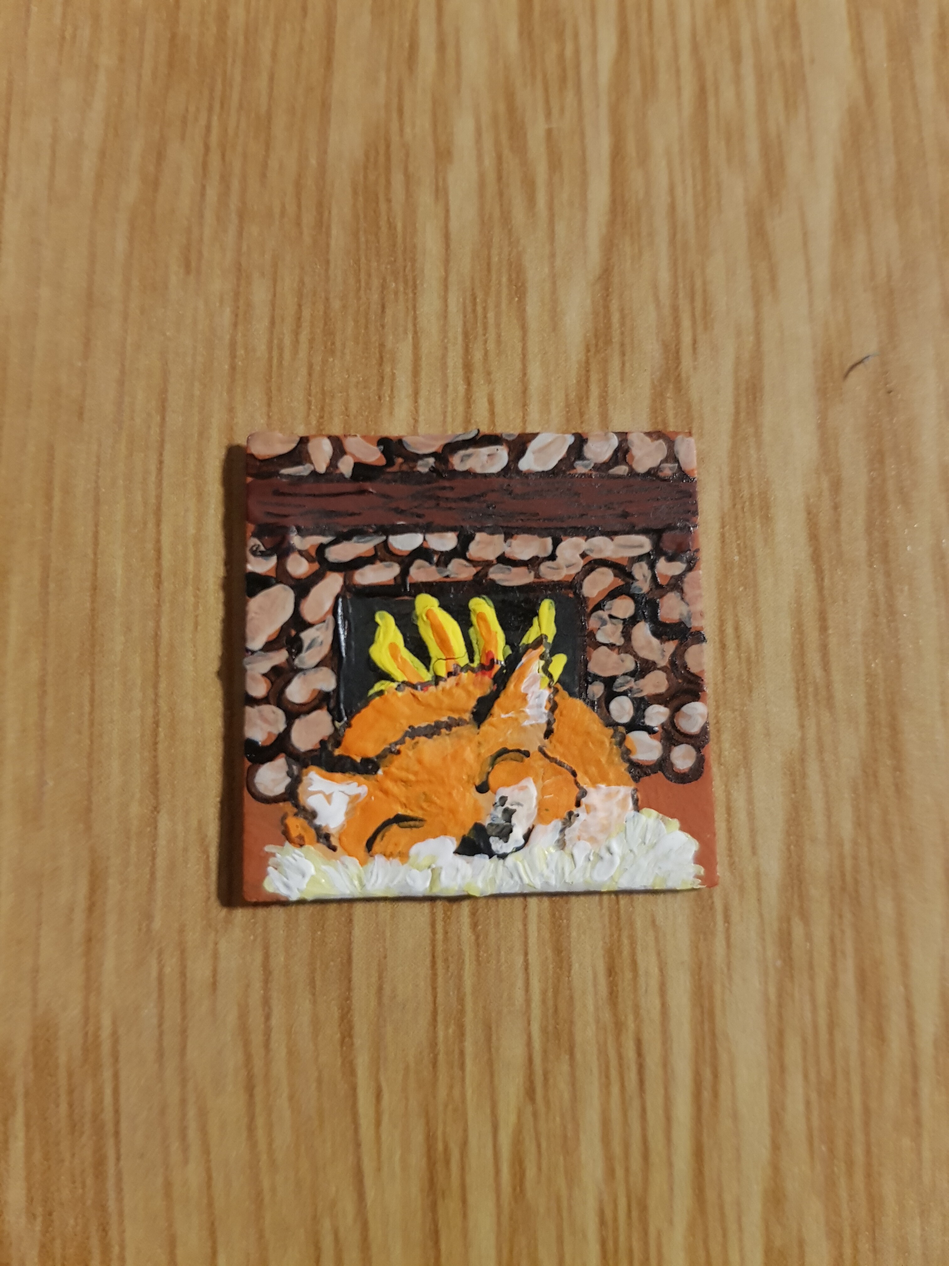 Heute gab es einen süßen Fuchs auf flauschiger Unterlage vor einem Kamin ^^