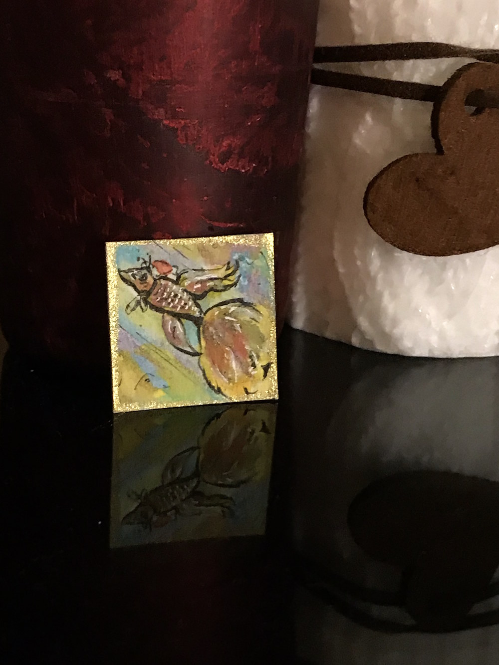 Drachi: Auch unglaublich niedlich. Besonders in Kombination mit der kleinen Mütze und dem Geschenk. Der Goldrahmen ist echt ein hübsches Detail.