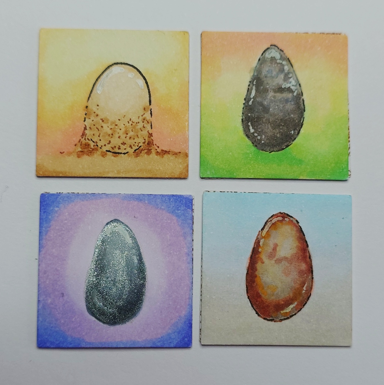 Ich habe auch mal wieder welche gemalt und es sind 4 Inchies entstanden, jeweils 1x für: