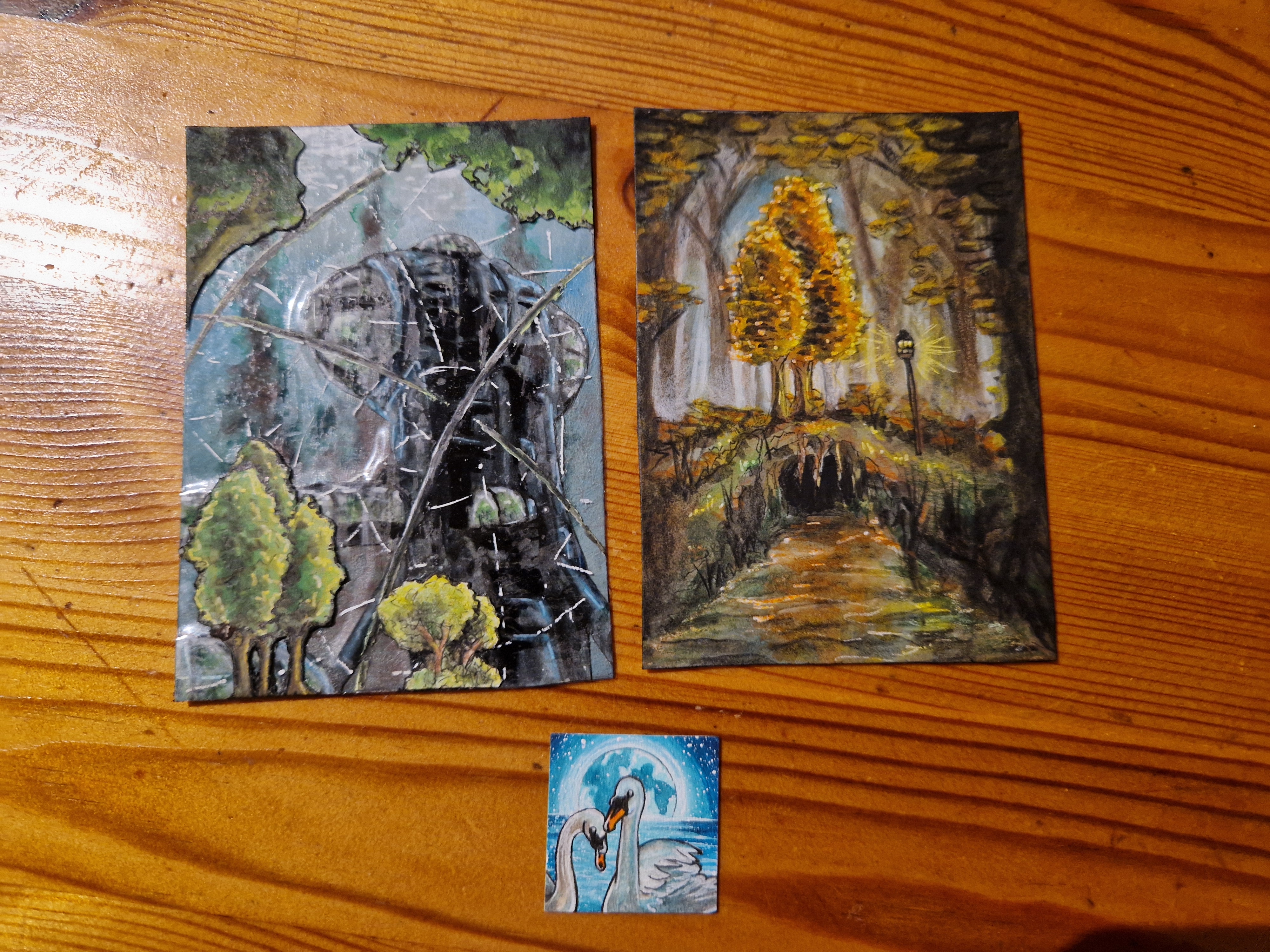 Außerdem lagen dem Brief gleich 2 KaKAOs von @Sockenzombie bei - ich fühle das Zu-faul-zum-Hochladen-sein sehr xD Vielen lieben Dank für diese tolle Überraschung <3 Die beiden Karten sind großartig und ich freue mich sehr, sie in meine Sammlung aufzunehmen :D Einmal eine spannende Station in einem Unterwasserwald und einmal eine einsame Laterne im Wald an einer Brücke - beides Motive, die zu einem Abenteuer einladen und mir sehr gefallen^^