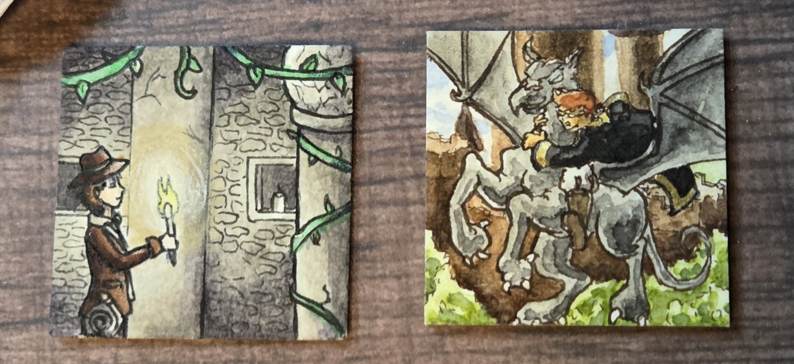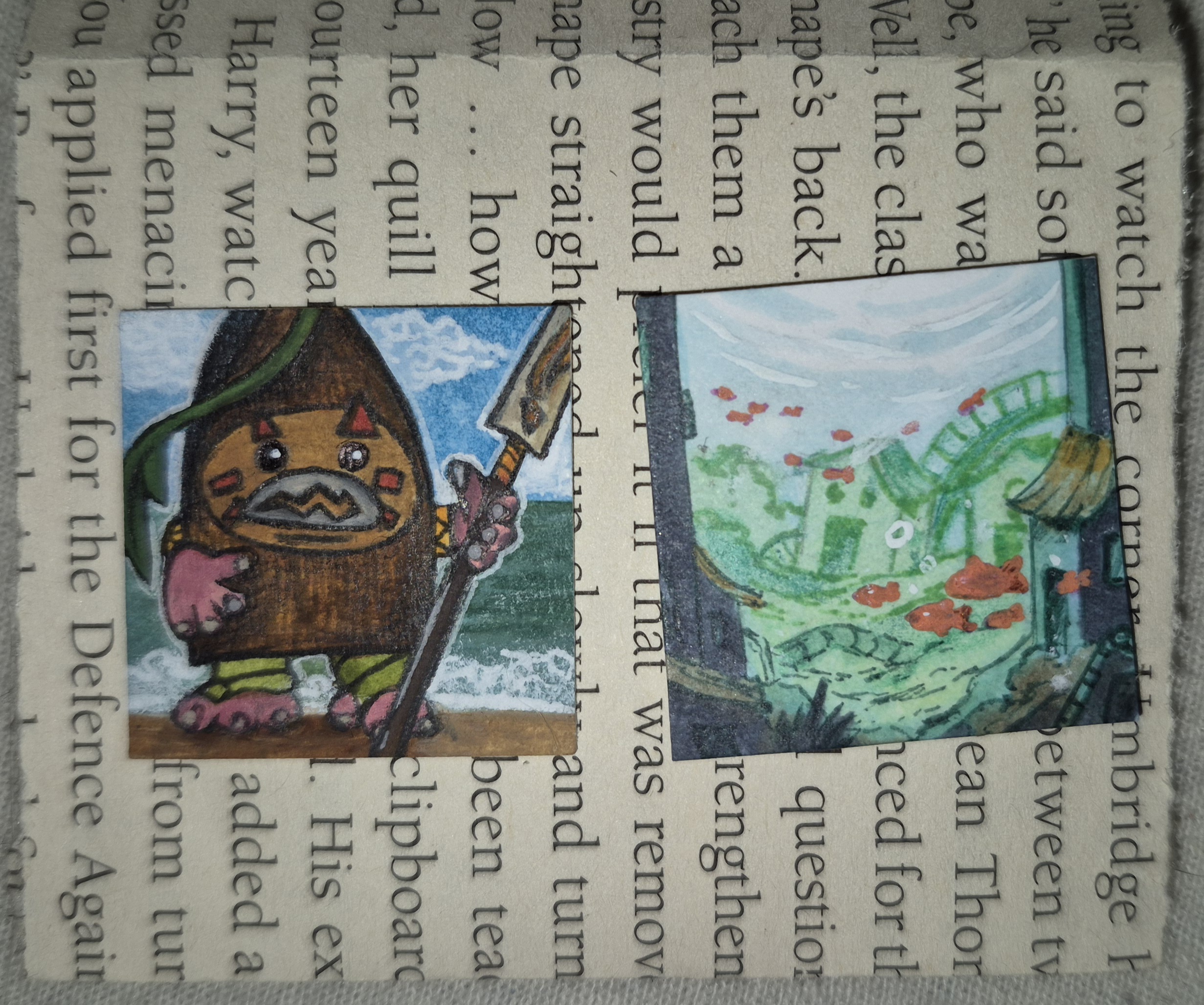 Banba liebt Schnecken und verdient sich ein kleines Reisetaschengeld mit ihnen, indem sie leere Schneckenhäuser als Talismane verkauft oder lebende Schneckchen mit kleinen Holzschatullen-“Terrarien” als Haustiere an den Mann bringt. Kein Wunder, dass sie sich so über diese süße Schnecke freut…und der Moosstein dazu? Perfekt