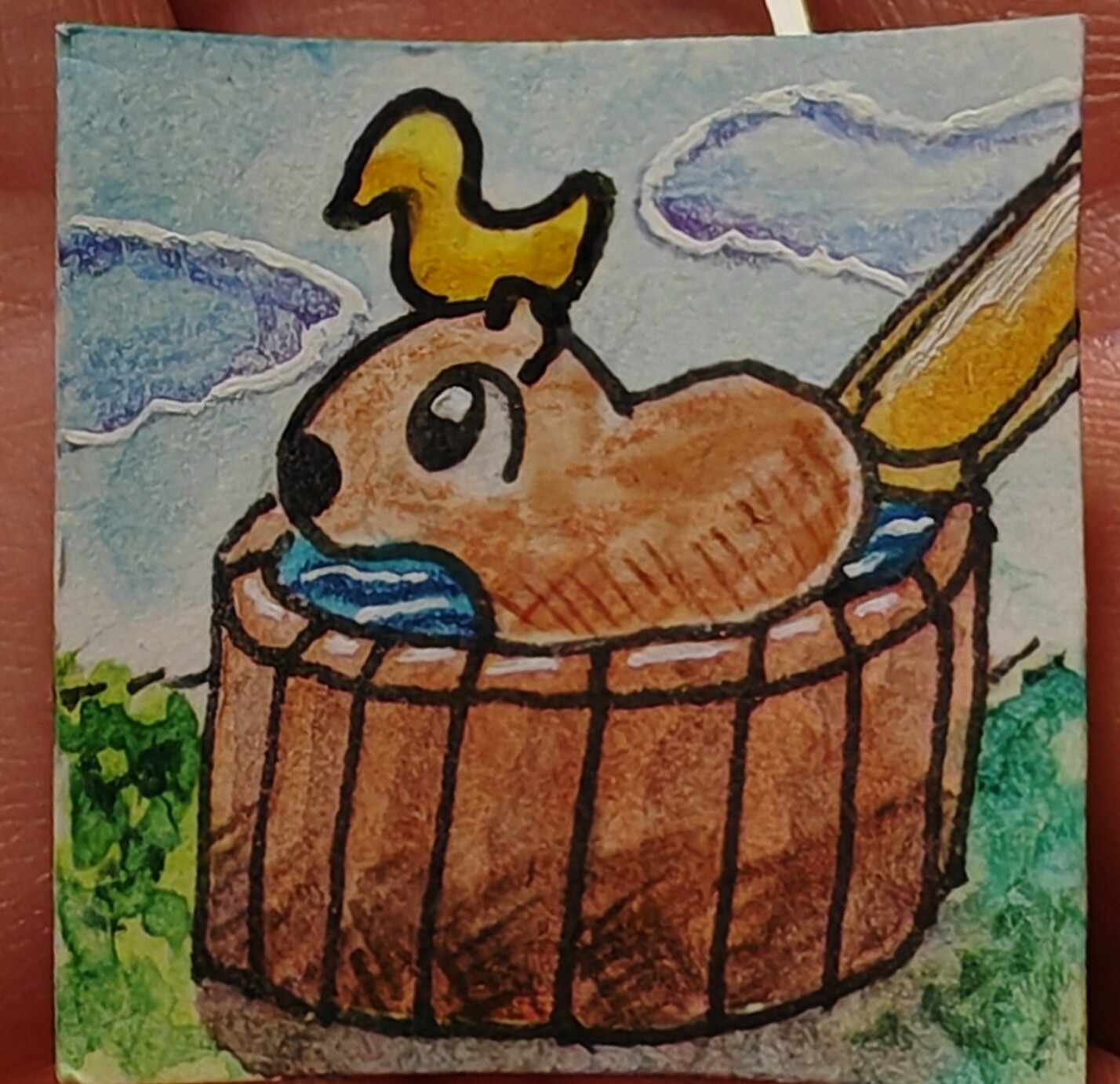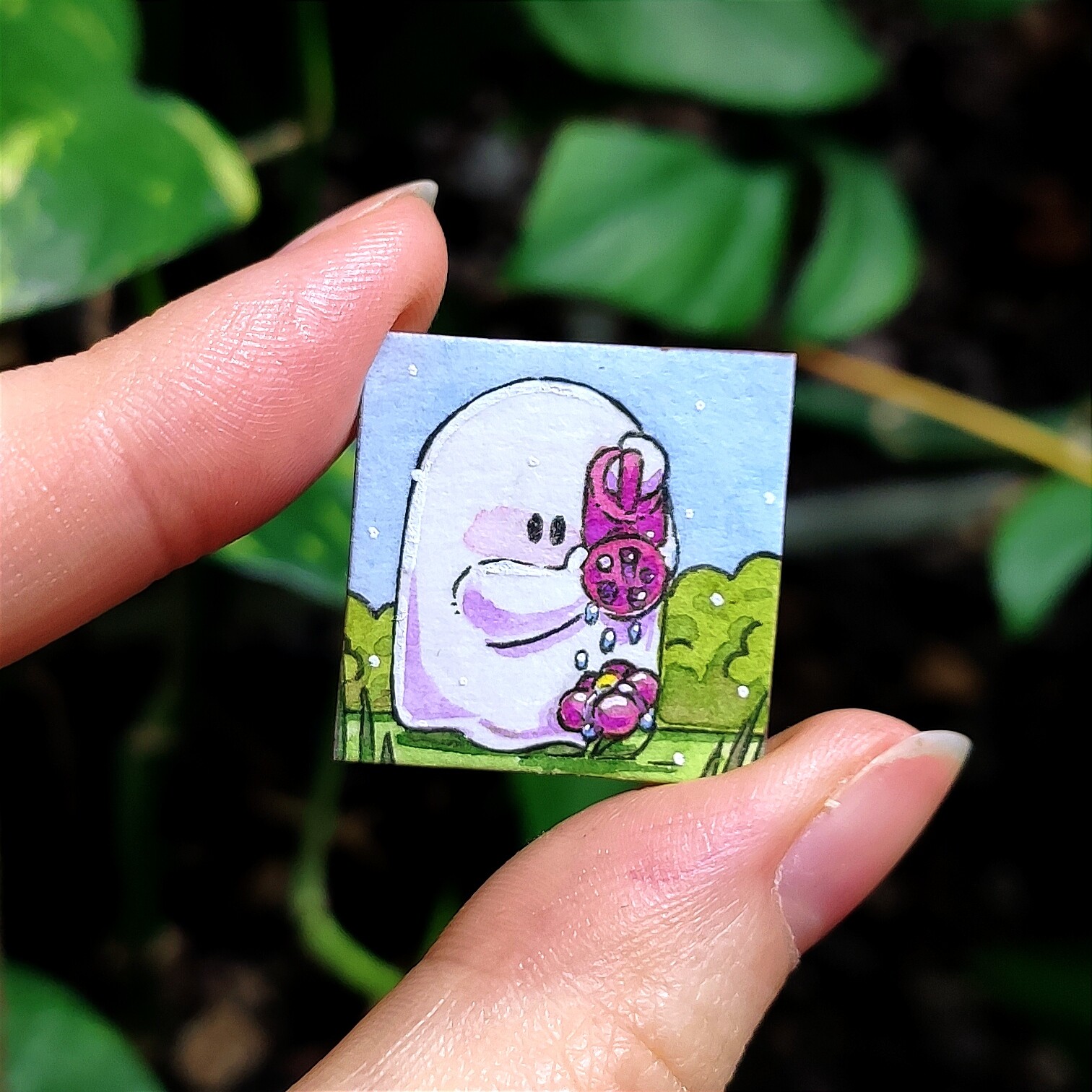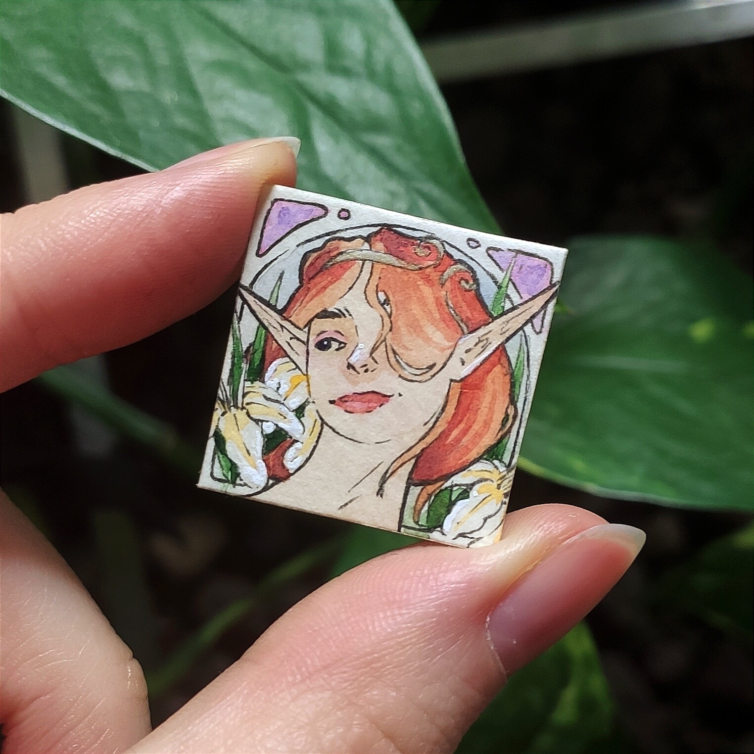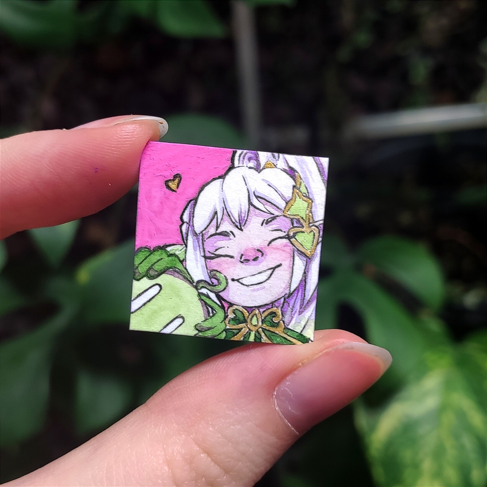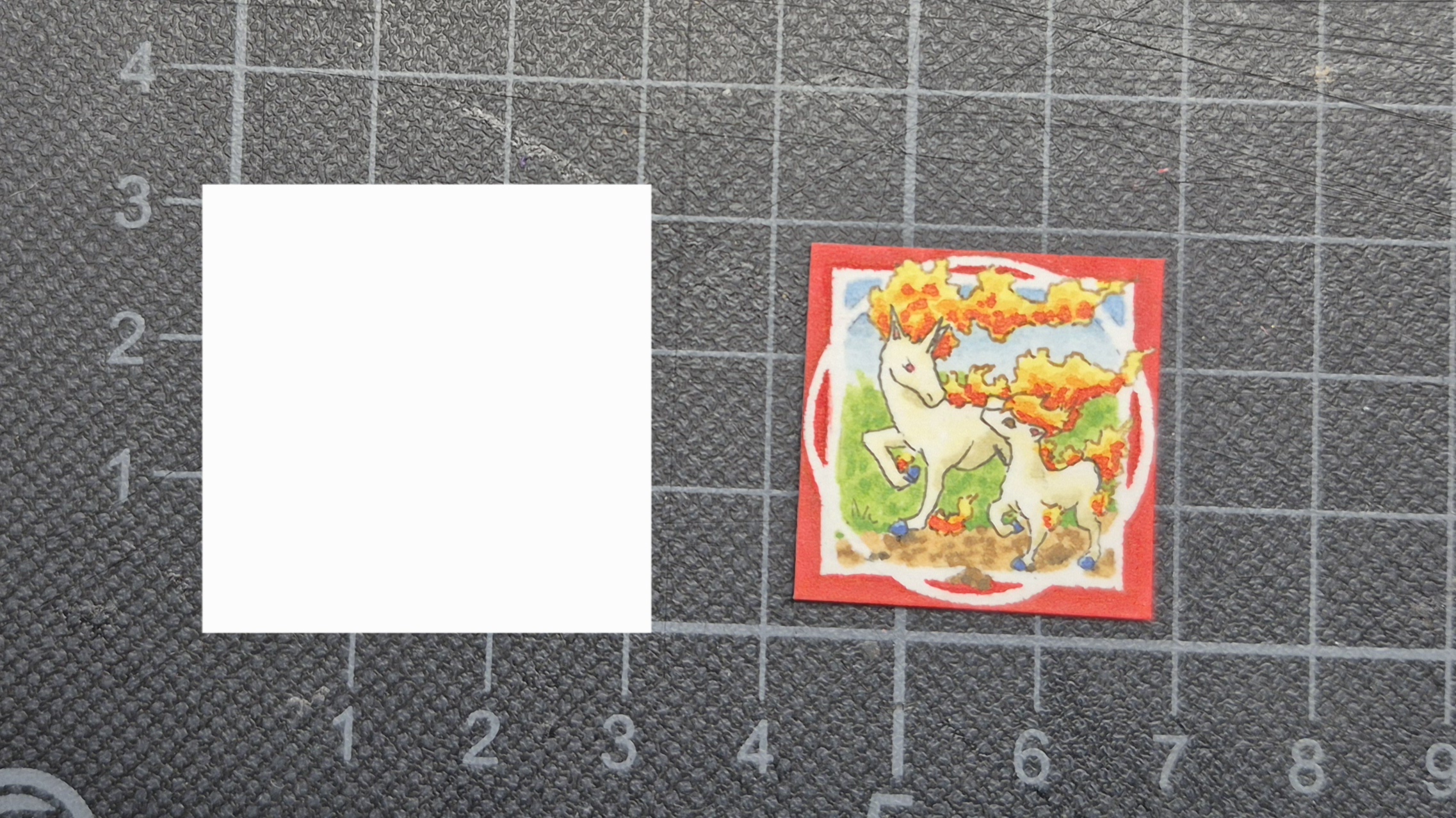 Was Inchies für mich angeht: ich mag es voll, wenn ein Inchie ein bisschen eine Geschichte erzählt, und wenn man die Mühe sieht, die reingeflossen ist. Das heißt nicht, dass ich irgendwie snobby bin und nur super-krasse Inchies mit 5 Fullbodys drauf gut finde! Ich mag’s nur voll gerne, wenn man… zum Beispiel die Lines nochmal nachzieht, wenn die Farben ein bisschen gedeckt haben oder so? Diese kleinen Sachen, die man bei Skizzen und 5-Minuten-Karten eher weglässt, aber bei “richtigen” Bildern dann macht? Was auch immer das für die einzelne Person bedeutet.