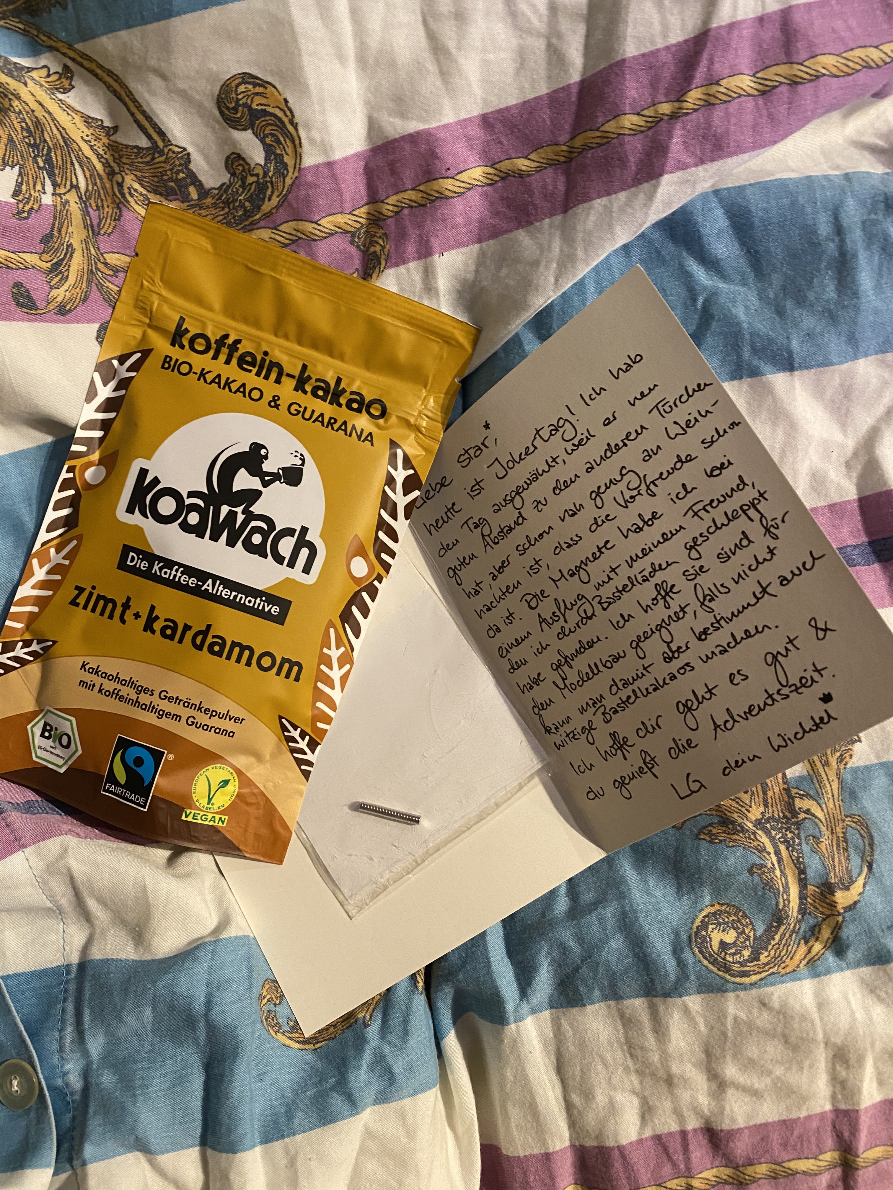Ich habe gestern Abend mein Bonus Päckchen geöffnet, da im ersten Brief stand ich soll es am besten öffnen wenn ich einen gemütlichen Abend habe will und einen Film gucke oder so ähnlich