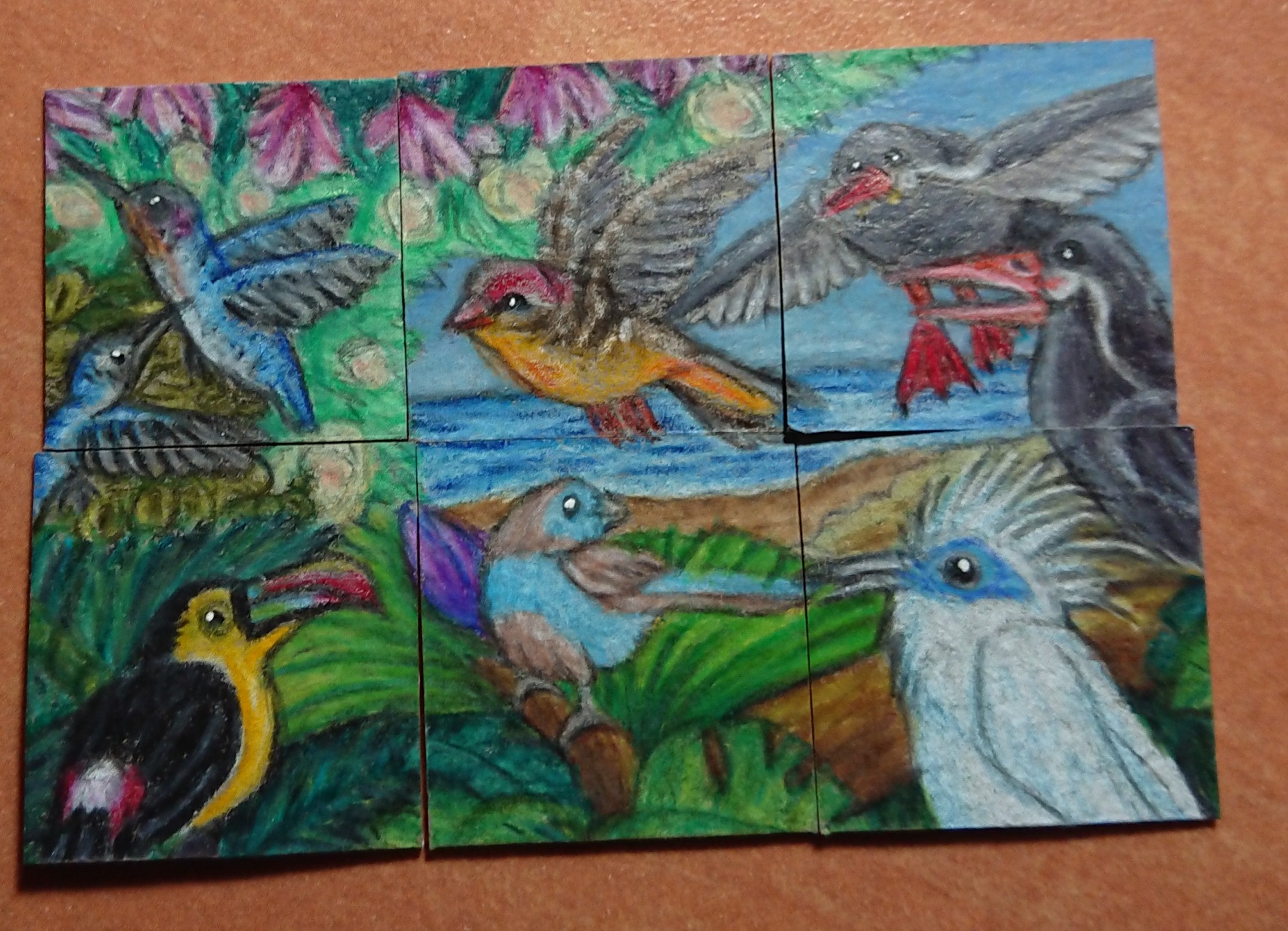 Ich habe ja versprochen, dass ich aus allen Materialien des AKs ein Bild male, aber Wasserbasiert und Öl funktioniert zusammen nicht so prima… ich bringe also erstmal alles Wasserbasierte unter. Außerdem muss ich mir für die Ölfarben noch ein separates Arbeitsplätzchen suchen, mein Zeichnetisch steht nämlich in meinem Schlafzimmer, und Terpentin im Schlafzimmer ist… wenig gesundheitsförderlich… Aber ich male was damit, versprochen!