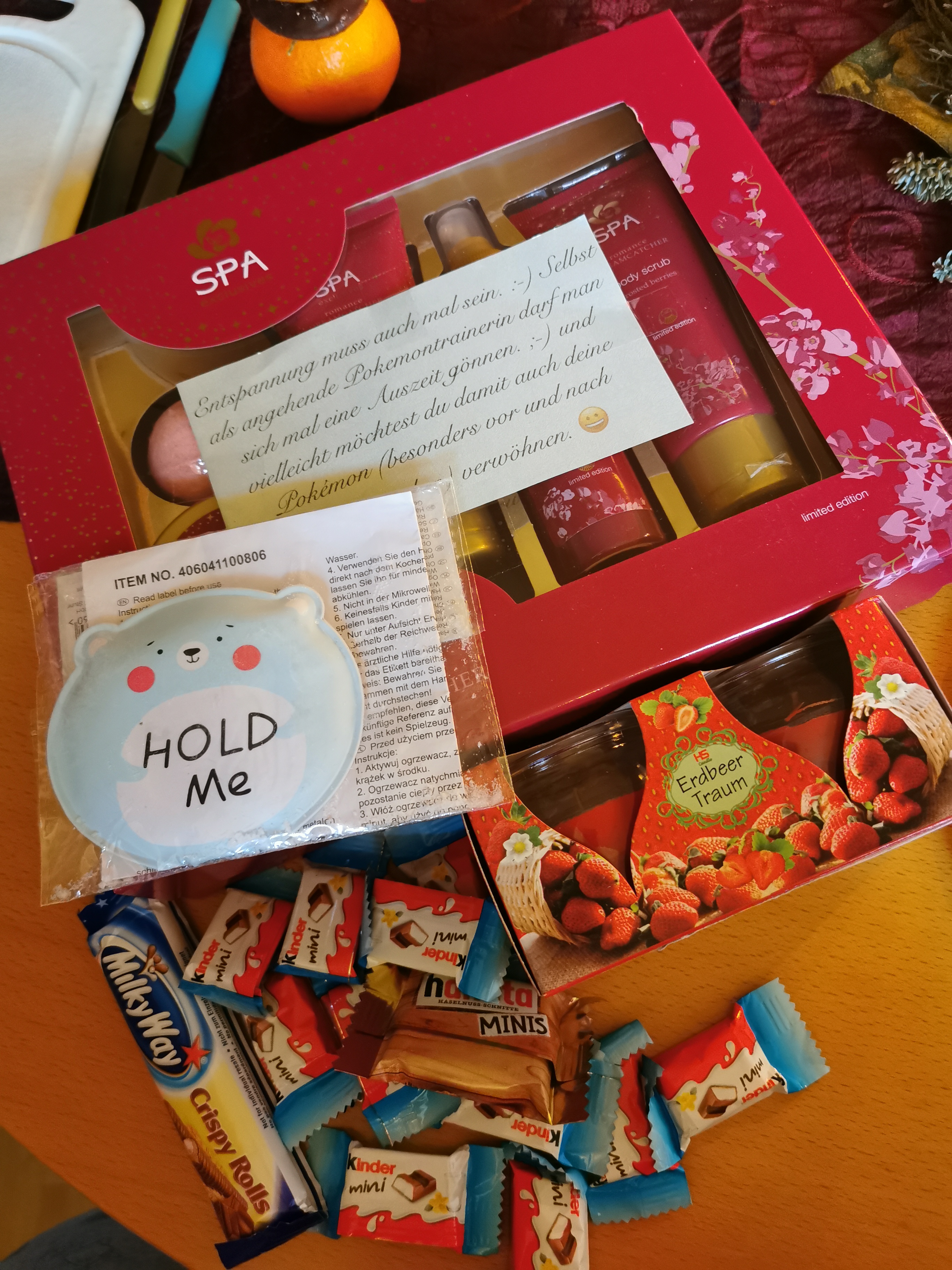 In dem anderen Pokedex war eine Kiste mit Süßkram (geht bei mir eh immer), wunderbar duftenden Kerzen und einem Handwärmer. der kleine Handwärmer Bär hat leider nicht überlebt, er hat eine offene Naht :/ Ich werde aber versuchen ob ich das Innenleben entfernen kann, dann kann ich ihn noch verbasteln ^^