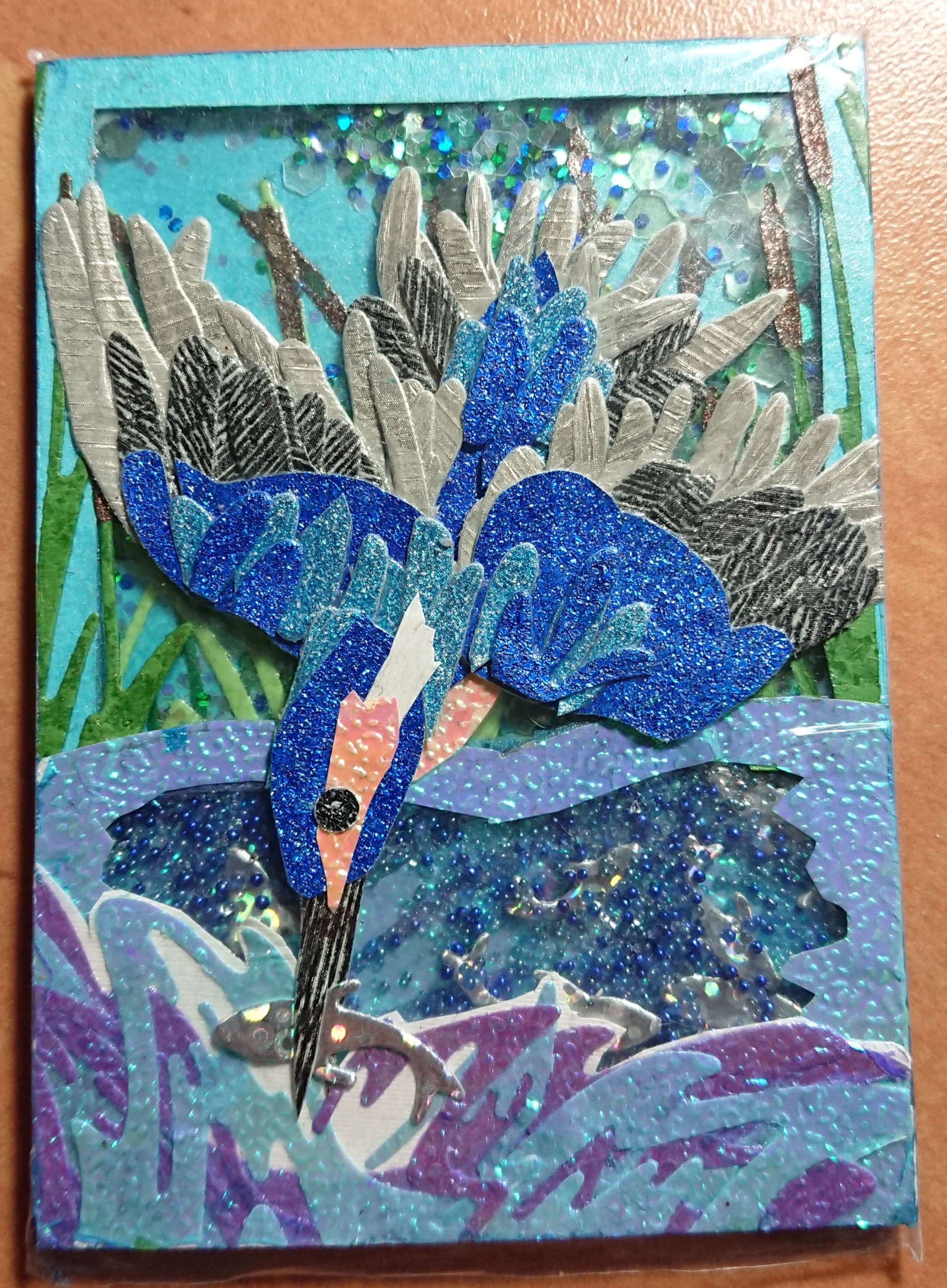 Ist dieser Eisvogel genial! So viele ausgearbeitete Federn und dann auch noch so schönes glitzeriges Material. Die Karte ist ein Traum q_q