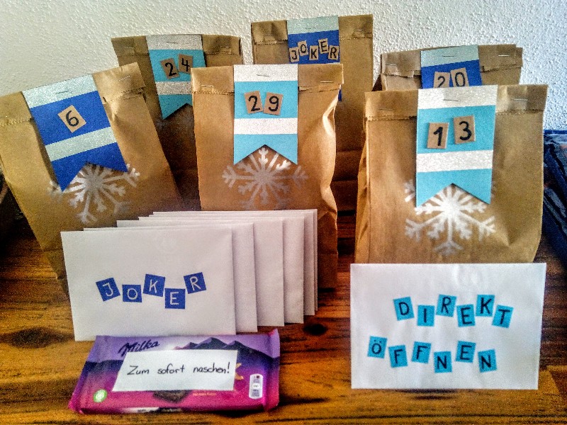 Mein Kalender kam gestern an! Freu mich schon sehr, was aus den Päckchen zum Vorschein kommen wird. Einige fühlen sich ganz schwer an. Das ist eine coole Verpackungsidee, wie so kleine Leckereien, die man sich in diesen Papiertüten für unterwegs mitnehmen kann <3