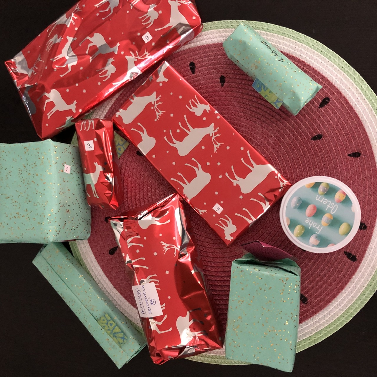 Wenn es wiederum ins Spektrum passt kannst du Dinge ja weiterverwenden und zur Not eben ein Jahr danach oder so, aber die Verpackung ist Teil des Kalenders und sie abzustimmen zeigt auch ein Stück weit, dass man sich mit einem Wichtel auseinandergesetzt hat, finde ich und das nicht einfach für irgendwen ist sondern eben diese spezifische Person.