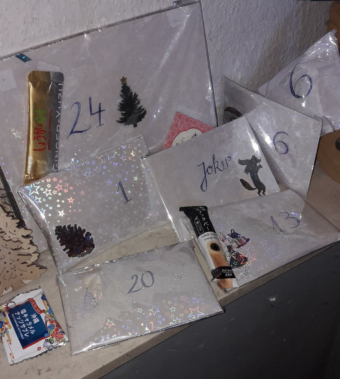 Als ich gestern den Kalender aufgebaut habe, hat einer meiner Katzen an einem Geschenk geknabbert! :x Und die zusammengeklebten Geschenke abgemacht. Zum Glück hat mein Freund das rechtzeitig gesehen, so dass er das Paket reparieren konnte (somit Weiss ich nicht was drin ist) Allerdings wissen wir nicht mehr welche Päckchen aneinander geklebt waren, es lässt sich nicht mehr zuordnen! :-x Deswegen sei mir nicht böse wenn ich an einem Tag vielleicht ein falsches öffne! :-/ Ich wollte nur dass du bescheid weißt und dich nicht wunderst oder so. Falls du noch weißt welche Nummer zu dem doppelten gehörte, dann kannst du (oder jmd anderes) mir das eventuell noch mitteilen! :-/ Ich bin etwas traurig und schockiert, meine Katzen haben sowas noch nie gemacht, sonst hätte ich es gleich irgendwo hingestellt wo keine dran kommt.