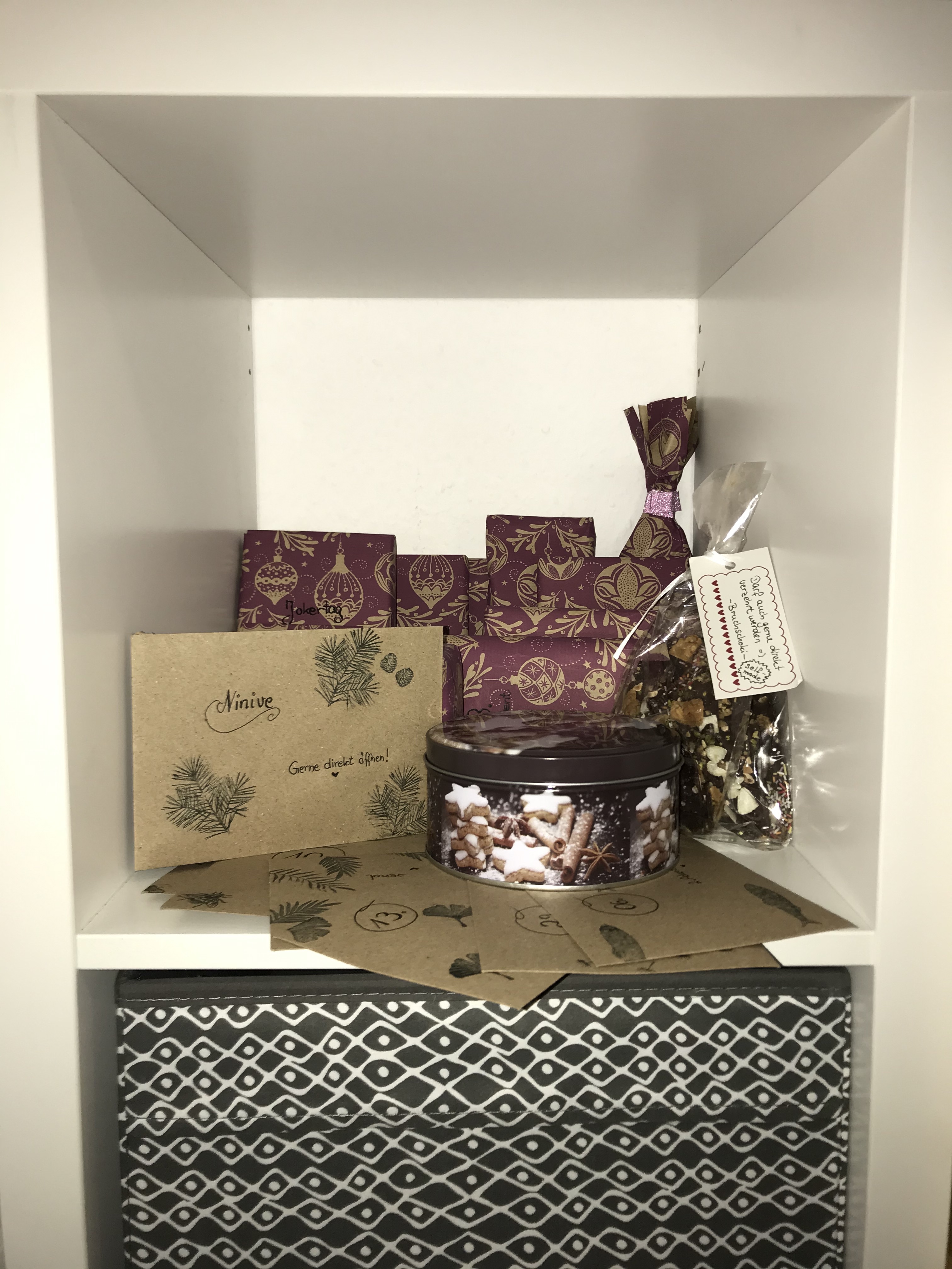 Dan habe ich erstmal festgestellt, dass ich gar keinen geeigneten Platz für den Kalender in der Wohnung habe. Naja, ich konnte wenigstens ein kleines Regalfach freiräumen und zum Glück passte alles irgendwie rein. Ist jetzt halt ein bisschen eng gedrängt, aber das finde ich nicht so schlimm.
