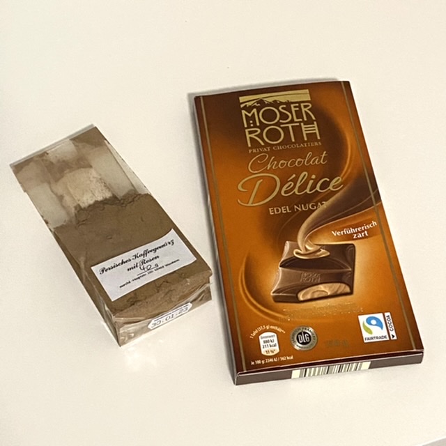 Er sieht so hübsch aus! Alleine schon die Zahlen! Dazu gab es direkt eine leckere Schokolade und persisches Kaffeegewürz mit Rosen