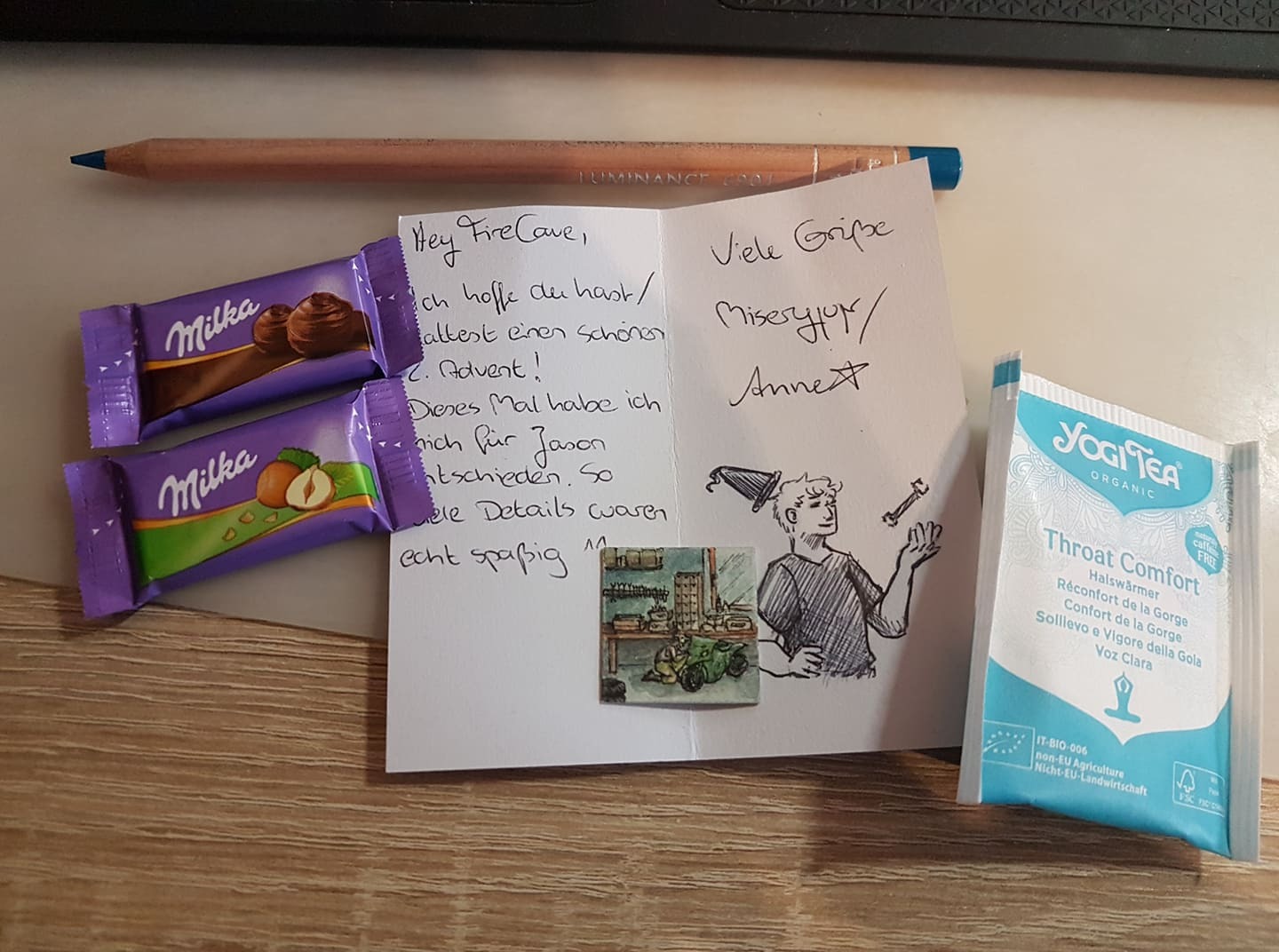 Im neuen Päckchen lag auf jeden Fall eine Postkarte bei, dank der ich jetzt auch weiß bei wem ich mich für den tollen Adventskalender bedanken muss.
